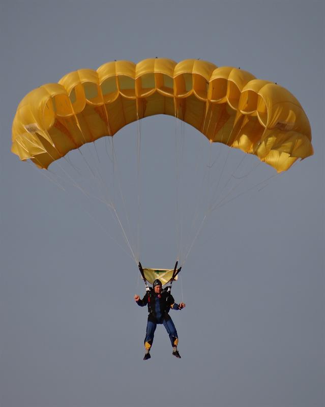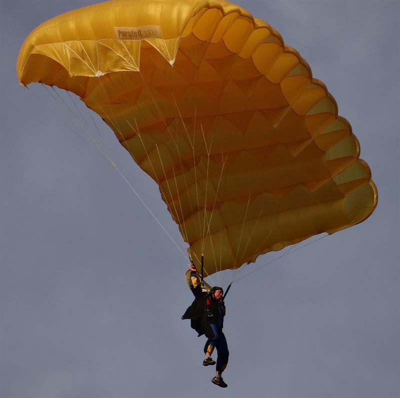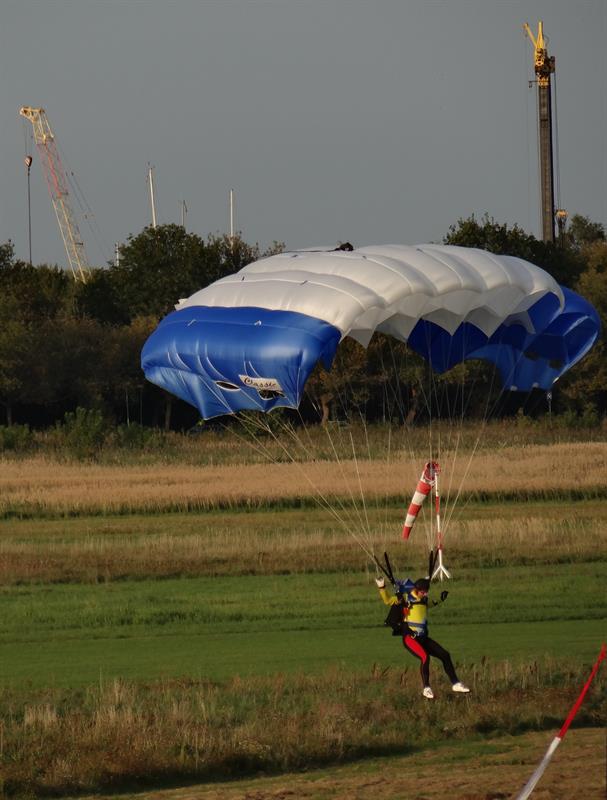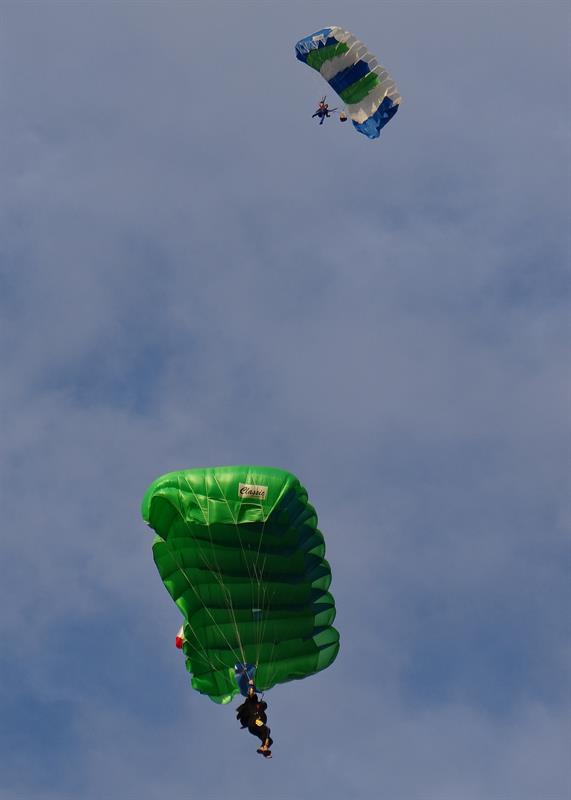 W piękne słoneczne popołudnie zawodnicy wyskakiwali z pokładu Antonova AN 2 z wysokości tysiąca metrów. Nie wszystkim udawała się ta sztuka, czyli precyzja w szybowaniu i lądowaniu w drodze powrotnej na ziemię w wyznaczony na niej mały punkt na tzw. patelni. W miejsce wielkości kapsla od butelki.