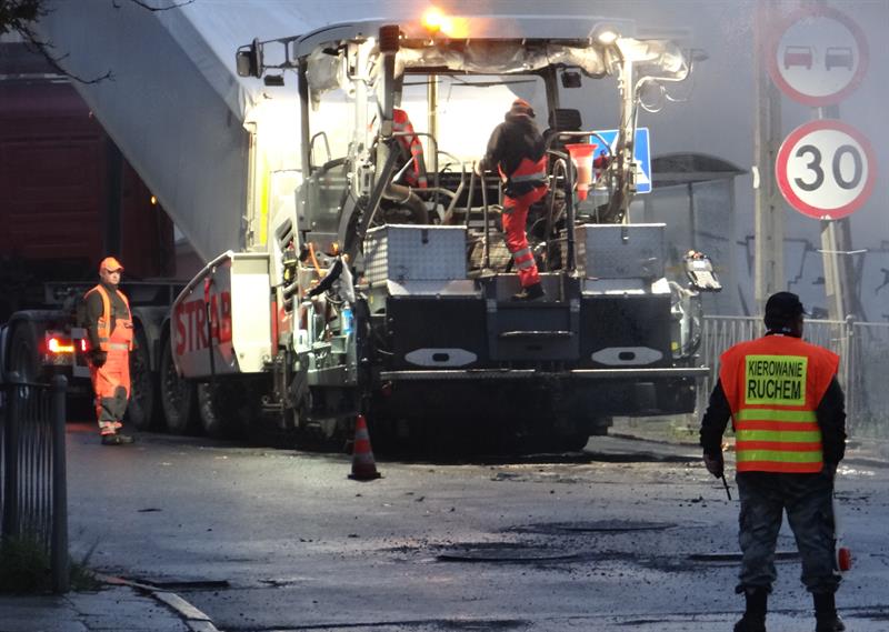 W miniony poniedziałek drogowcy Strabagu wylewali ostatnią warstwę ścieralną nawierzchni na jezdni m.in. w rejonie skrzyżowania ulic Światowida i Strzałowskiej. ©℗