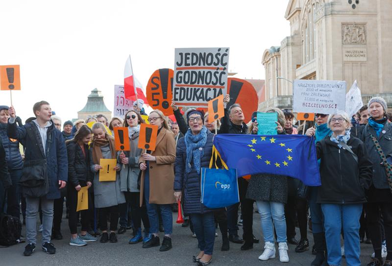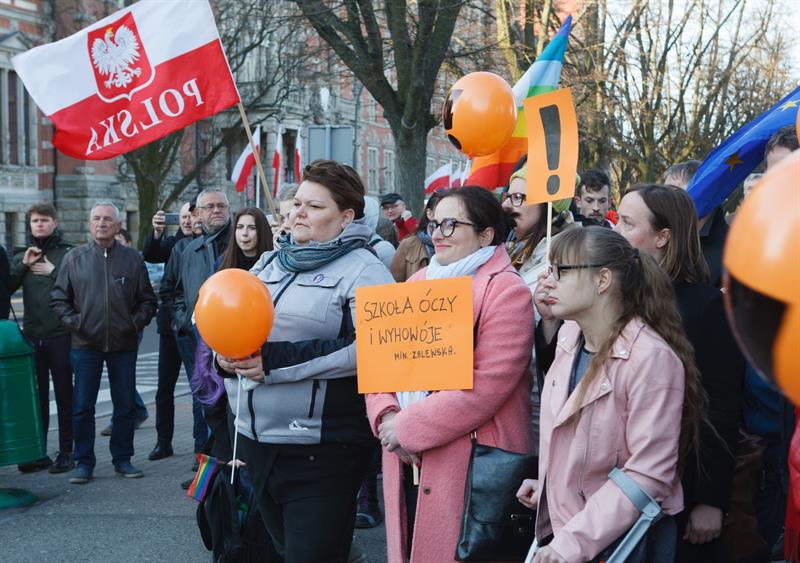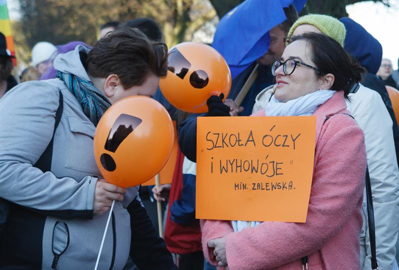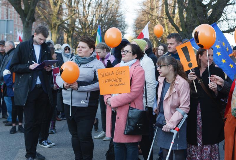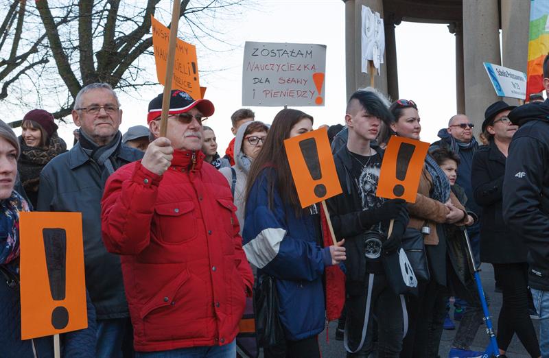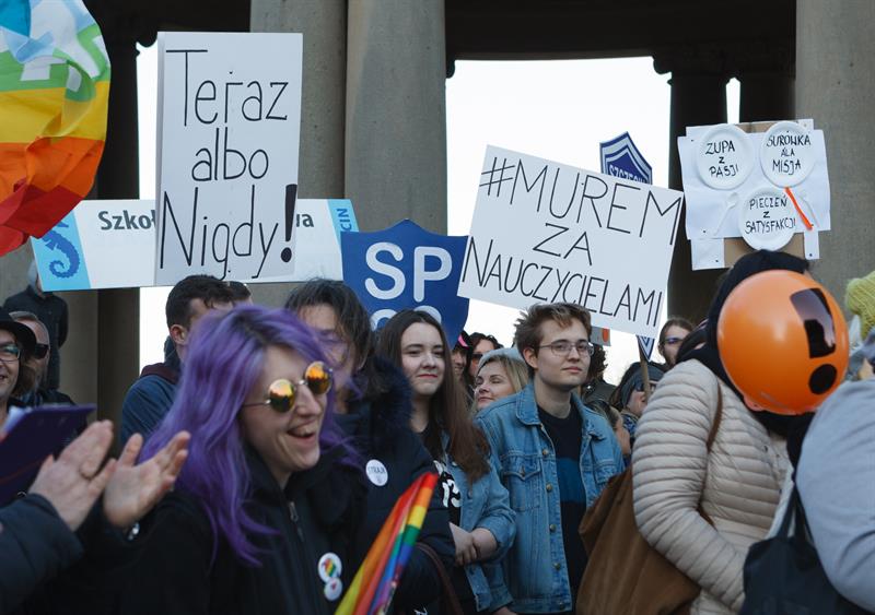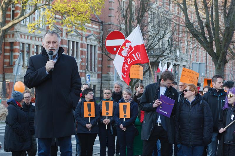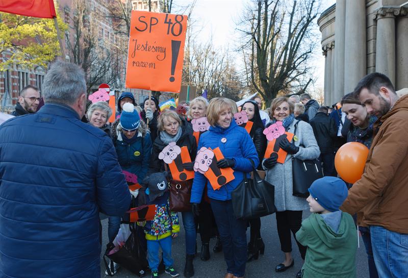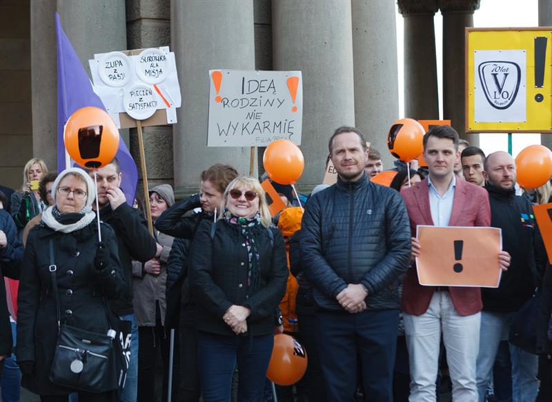 Wiec poparcia dla strajkujących nauczycieli zorganizowali przed Kuratorium Oświaty Katarzyna Kotula, Wiktoria Arbaros, Sebastian Bednarski, Wojtek Przybylski. Akcja odbyła się pod hasłem "Lekcja Solidarności. Wielki Wykrzyknik dla Nauczycieli".