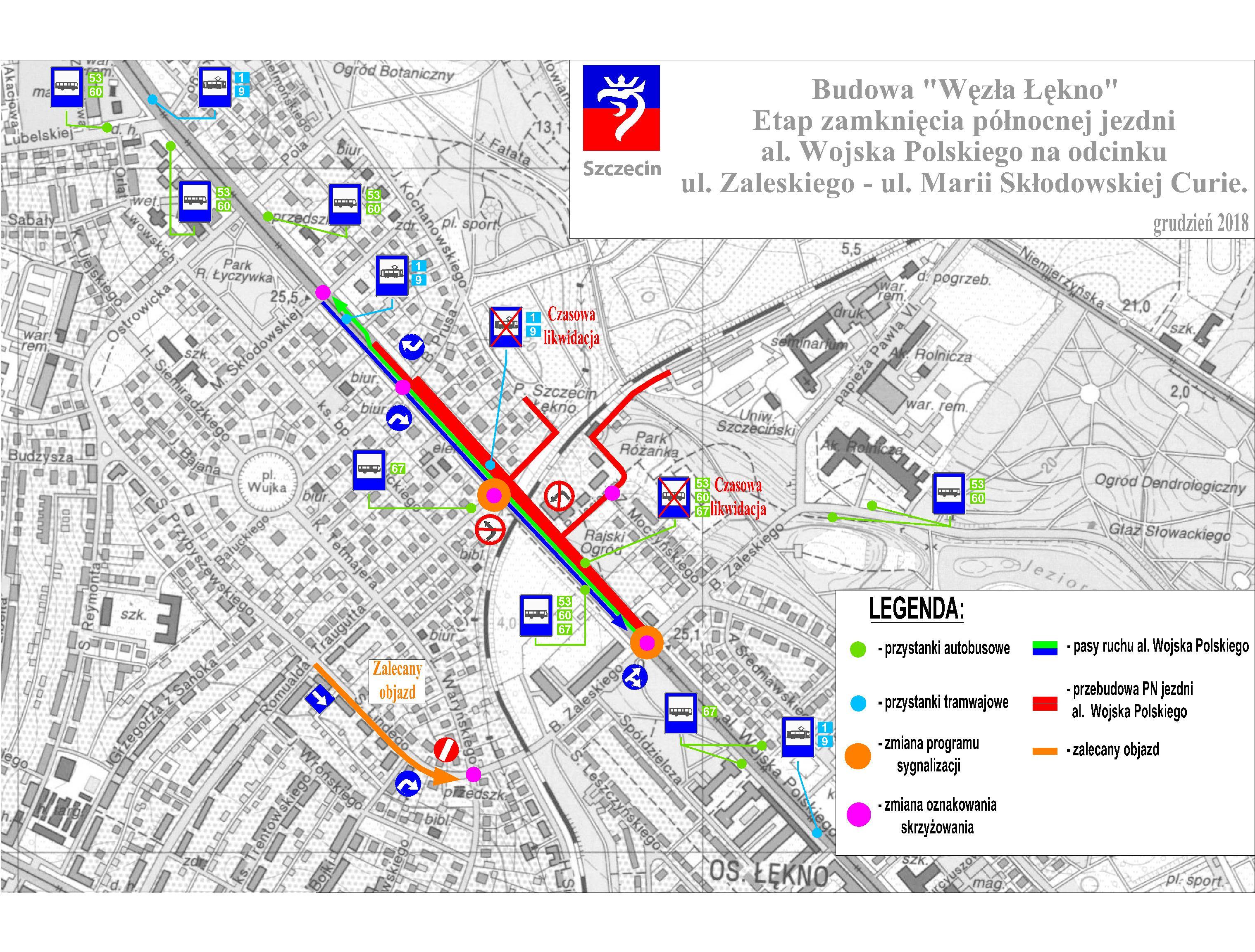 Niestety bez kłopotów nie obejdzie się podczas modernizacji skrzyżowania al. Wojska Polskiego z ul. Traugutta. Choćby przez to, że trzeba będzie wyburzyć wiadukt przy stacji Łękno. Wykonawca zapewnia, że całkowicie nie zamknie al. Wojska Polskiego, ale nawet jej zawężenie na pewno sprawi kierowcom dużo problemów z przejazdem – aleja jest przecież drogą wojewódzką. To główny dojazd do zachodnich dzielnic Szczecina, podmiejskich miejscowości i do Polic.