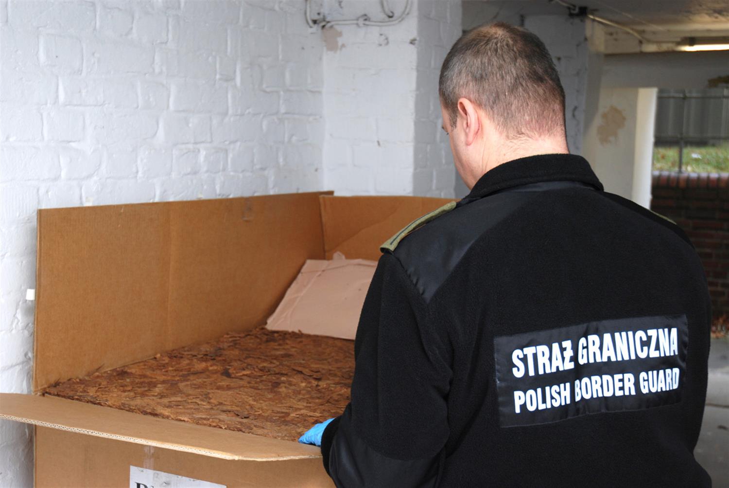 Pogranicznicy podczas kontroli drogowej fiata, którym jechał mieszkaniec woj. dolnośląskiego, zajrzeli do przewożonego autem kartonu. Było w nim ok. 200 kg tytoniowych liści bez akcyzy.