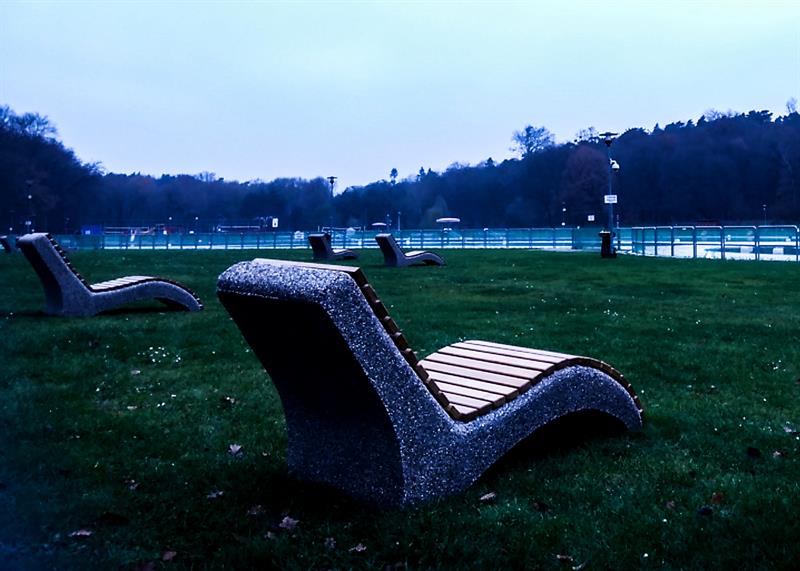 Są wykonane z betonu, a wyłożone świerkowym drewnem. Teraz ustawiono 15 stacjonarnych. Natomiast ich obrotowa wersja wkrótce - jak zapowiada Centrum Informacji Miasta - pojawi się także w parku Kasprowicza: opodal pomnika Czynu Polaków oraz nad Rusałką.