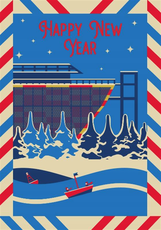– Morskie Centrum Nauki życzy „Happy New Year”. Oryginalna i wyjątkowa praca autorstwa szczecińskiego grafika Tomasza Panka pt. „Happy New Year” przedstawia Morskie Centrum Nauki w Szczecinie w zimowej scenerii pod rozgwieżdżonym niebem – opisuje plakat Jarosław Dobrzyński, rzecznik prasowy MCN. Jak mówi, nawiązuje on do budzącej wiele emocji kartki świątecznej „Warszawa. Każdemu, bez wyjątków, wszystkiego dobrego”. Praca zawiera oryginalny podpis autora.