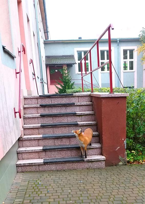 Duże było zaskoczenie mieszkanki Świnoujścia, która zobaczyła lisa na schodach jednej z miejscowych szkół. Zdjęcie zdążyło obiec już Facebook i internauci żartują, że zwierzę też chciało zasiąść w szkolnej ławce. Ale padają też spostrzeżenia, że lisy coraz częściej pojawiają się na ulicach zarówno Świnoujścia, jak i innych miast w Polsce.