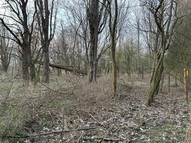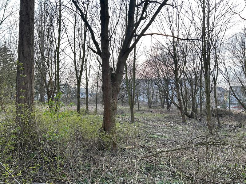 Nie ma żadnych drzew, tam dominują krzaki i samosiejki. Nic wartościowego, ale z pewnością teren doskonale nadaje się do wyprowadzania psów.