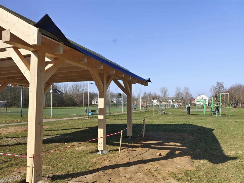 Powstaje ono na terenie zielonym, przy ulicy Tańskiego, gdzie są już dwa boiska, plac zabaw i siłownia plenerowa. Tuż przy nich budowana jest drewniana wiata. Nawierzchnia pod nią i wokół zostanie utwardzona. Staną tam też kosze na śmieci.