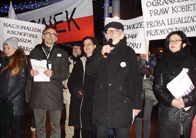 We wtorkowe (13 bm.) popołudnie blisko 300 osób zebrało się na manifestacji Komitetu Obrony Demokracji (KOD) na Rynku Staromiejskim w Koszalinie. Wśród demonstrujących niespodziewanie pojawił się Jerzy Madej, były naukowiec i polityk ziemi koszalińskiej.