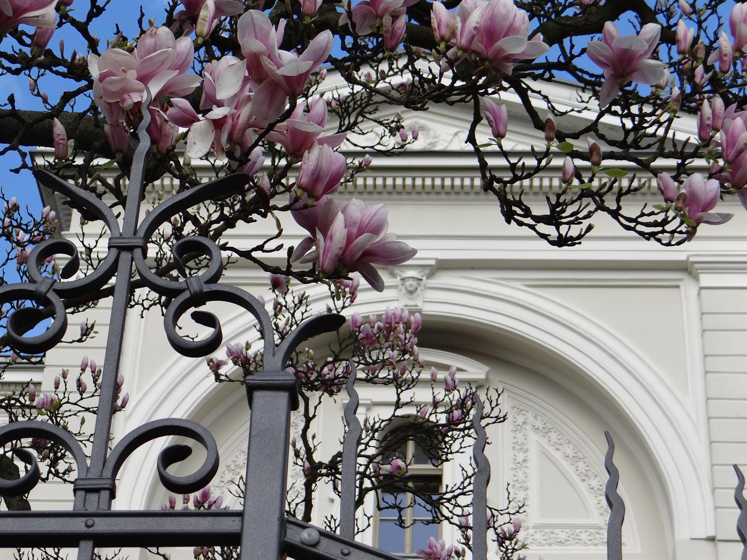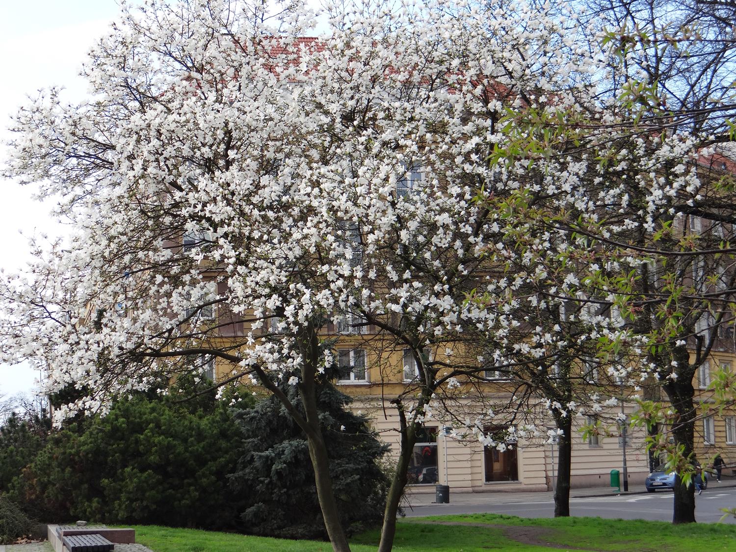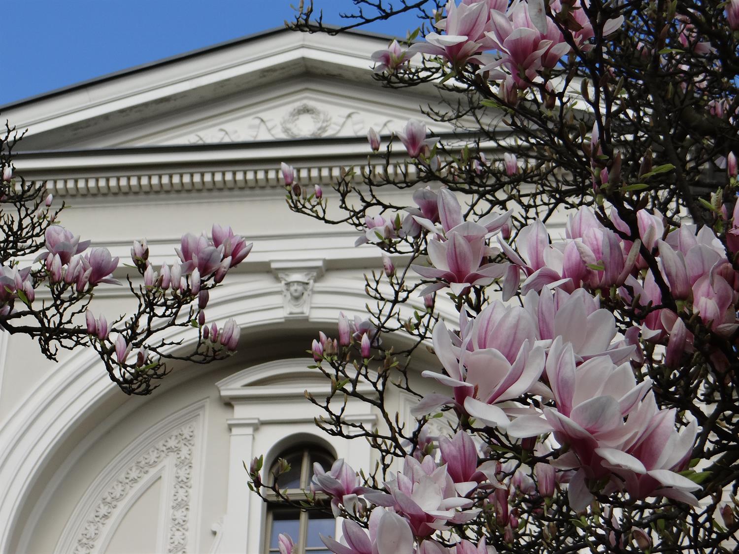 Jeden z roślinnych symboli Szczecina - magnolia - zakwita zwykle w maju. Jednak w tym roku kwiatowe pąki zaczęły pękać już teraz. Z pewnością przyczyniły się do tego ostatnie dni słonecznej ciepłej aury, ale może wpływ na to miały też... roześmiane szczecińskie dziewczyny?