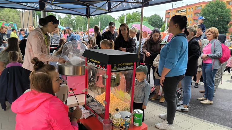 Od kilku tygodni można już korzystać z nowej infrastruktury rekreacyjno-sportowej, jaka powstała w środku osiedla, przy ul. Roweckiego w Policach. Ale dziś (w sobotę 15 czerwca) uroczyście oddano ją do użytku najmłodszym i nieco starszym mieszkańcom. Z okazji tego otwarcia przygotowano wiele dodatkowych atrakcji: występy artystyczne, dmuchane zjeżdżalnie, zaplatanie warkoczyków... I jeszcze smakołyki dla każdego niepełnoletniego uczestnika zabawy: lody, popcorn, watę cukrową. Dla starszych też się coś znalazło: kiełbaski, ciasta i wiele innych pyszności. A przede wszystkim - towarzystwo, sąsiedzkie pogaduchy...