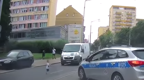 Na szczęście przed maluchem szybko zatrzymał się kierowca jednego z samochodów. Brawa należą się również policjantom, którzy jechali na przeciwko i radiowozem zablokowali jeden z pasów, oraz kobiecie która z przystanku tramwajowego podbiegła do dziecka i wzięła je na ręce.