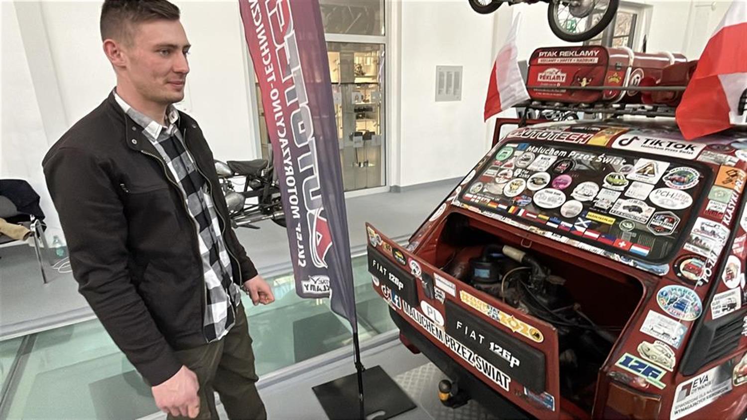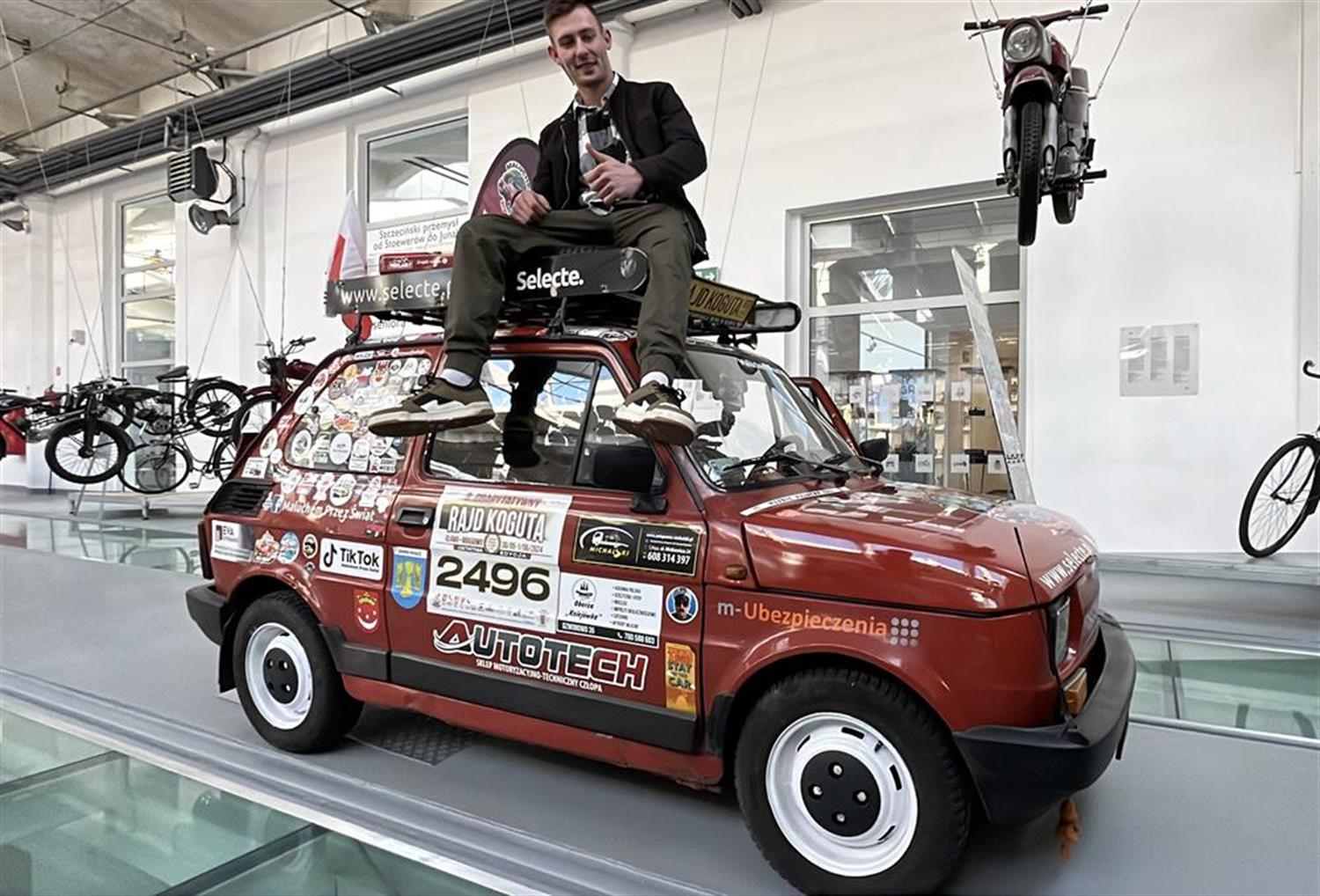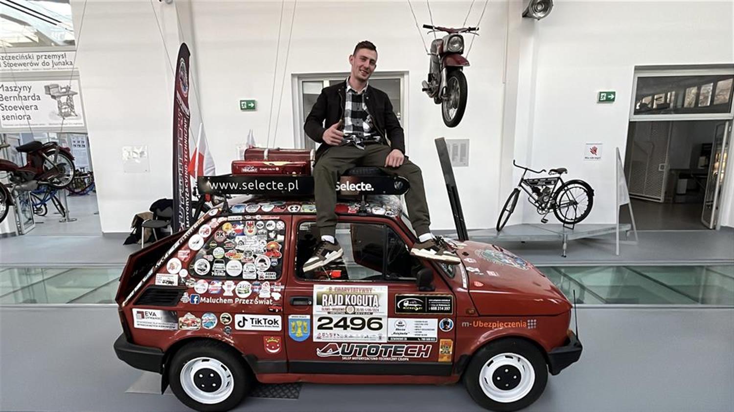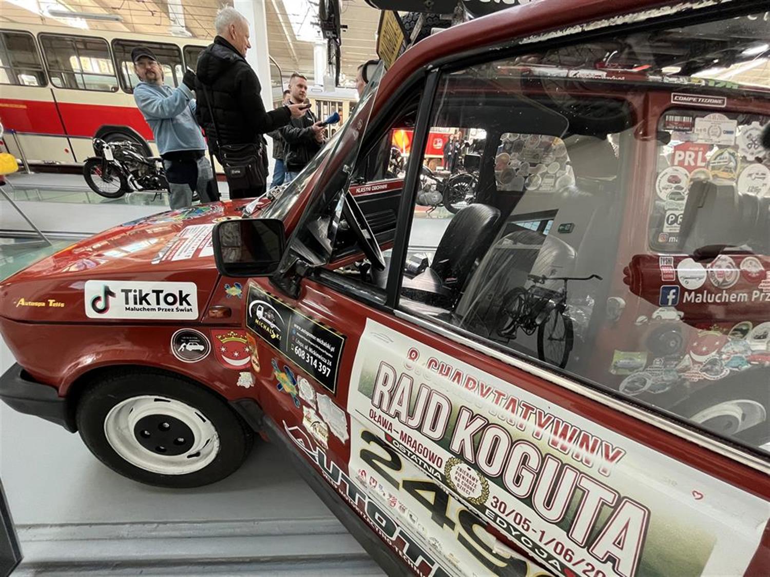 W niedzielę do Muzeum Techniki i Komunikacji w Szczecinie trafił wyjątkowy fiat 126p. Jego właściciel to Piotr Kasper, tiktoker z kanału „Maluchem przez świat”.