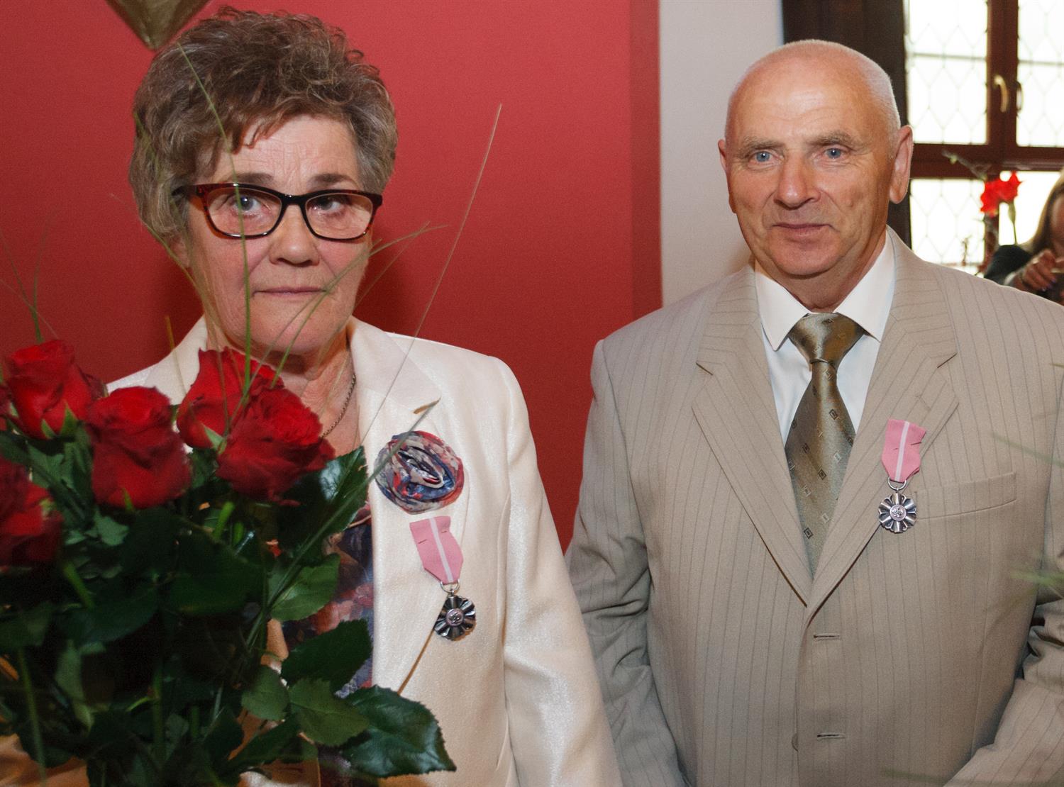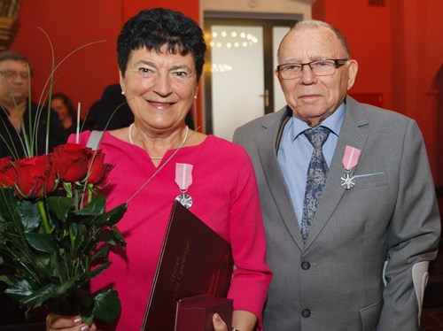 W sali ślubów w Zamku Książąt Pomorskich w Szczecinie odbyła się niedawno uroczystość udekorowania czternastu par okolicznościowymi Medalami za Długoletnie Pożycie Małżeńskie. Uhonorowano w ten sposób pary, które przeżyły ze sobą w małżeństwie 50 lat i więcej. Odznaczenia, nadane przez prezydenta RP, wręczył małżonkom Piotr Krzystek, prezydent miasta. Wśród uhonorowanych byli prezentowani na zdjęciach państwo Aniela i Marian Antoniewiczowie, Teresa i Czesław Dzido, Irena i Zygfryd Ferdynusowie oraz Anna i Witold Krasowscy. Wszystkim obchodzącym wspaniały wspólny jubileusz serdecznie gratulujemy!