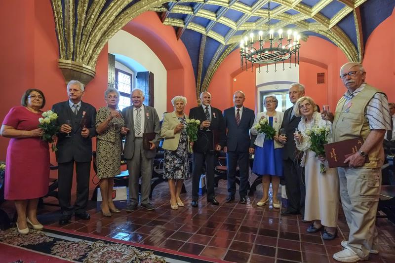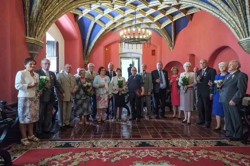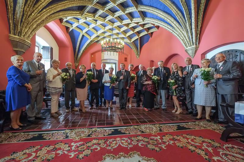 Były kwiaty i lampka szampana. Dwadzieścia trzy pary, które mogą pochwalić się co najmniej 50-letnim stażem małżeńskim, zostały uhonorowane podczas uroczystości w Zamku Książąt Pomorskich. W imieniu Prezydenta RP Andrzeja Dudy Medale za Długoletnie Pożycie Małżeńskie wręczył im w Sali Ślubów prezydent Szczecina Piotr Krzystek. Na uroczystości obecny był także Karol Lipiński - kierownik Urzędu Stanu Cywilnego w Szczecinie.