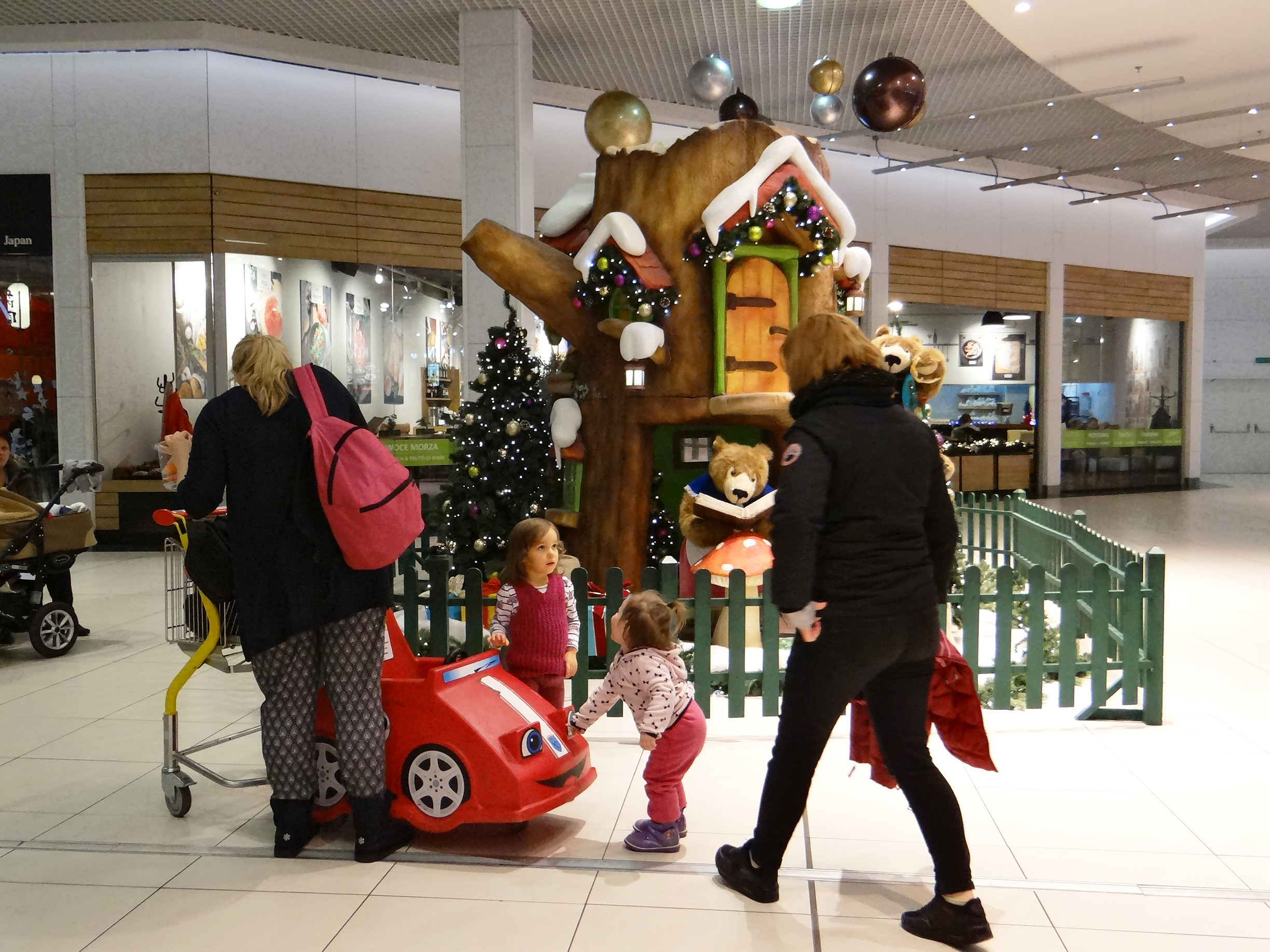 Niektóre z supermarketów i galerii handlowych mają specjalne kąciki zabaw, gdzie można zostawić dzieci na czas zakupów: aby bawiąc się, czekały na powrót rodziców pod opieką dorosłych.