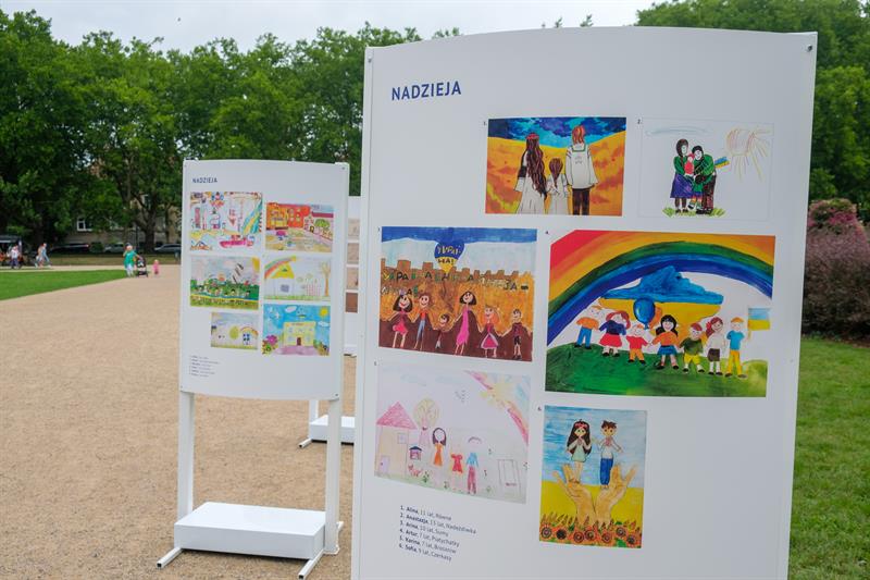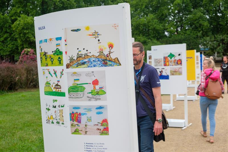 Wojna jest zawsze taka sama. Przynosi śmierć, cierpienie, strach, a ci, którzy ocaleją, zmagają się z traumami, które często przekazują potem następnym pokoleniem. Jej ofiarami są także najmłodsi, najbardziej niewinni. O tym opowiada wystawa "Mamo, ja nie chcę tej wojny!", która stanęła na Jasnych Błoniach w Szczecinie - składają się na nią stworzone w 1946 roku rysunki polskich dzieci, które przeżyły niemiecką okupację, oraz prace dzieci ukraińskich, którym zagrażają Rosjanie.