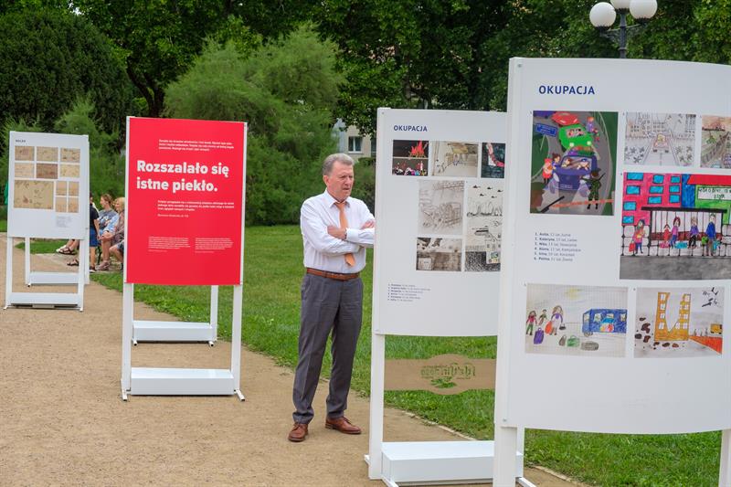 Autorami rysunków są kilku- i kilkunastolatkowie. Motywy polskich i ukraińskich prac są podobne: egzekucje, naloty, czołgi, śmierć mamy, taty, ale też wyrazy nadziei, że możliwe jest dobre zakończenie. W 1946 roku Kazimierz Świderski z klasy VII napisał: "Księżyc przyglądał się z ciekawością miastom, obliczając ile wśród jednego dnia narobiło się gruzów, ilu padło ludzi, leżąc w kałużach krwi, oglądał rannych i trupów". Na wystawie zobaczymy prace młodych Ukraińców z różnych miast - ze Lwowa, z Krzywego Rogu, ale także z Buczy pod Kijowem, czyli z miejsca, w którym Rosjanie dopuścili się szczególnie okrutnych zbrodni. Siedmioletnia Illaria z Zaporoża napisała: "Chcę pokoju! Chcę, żeby moi krewni uśmiechali się tak jak wcześniej. Marzę o bezpiecznym niebie i jasnym, ciepłym słońcu nad głową!".