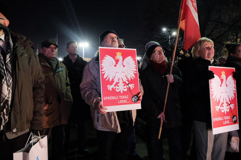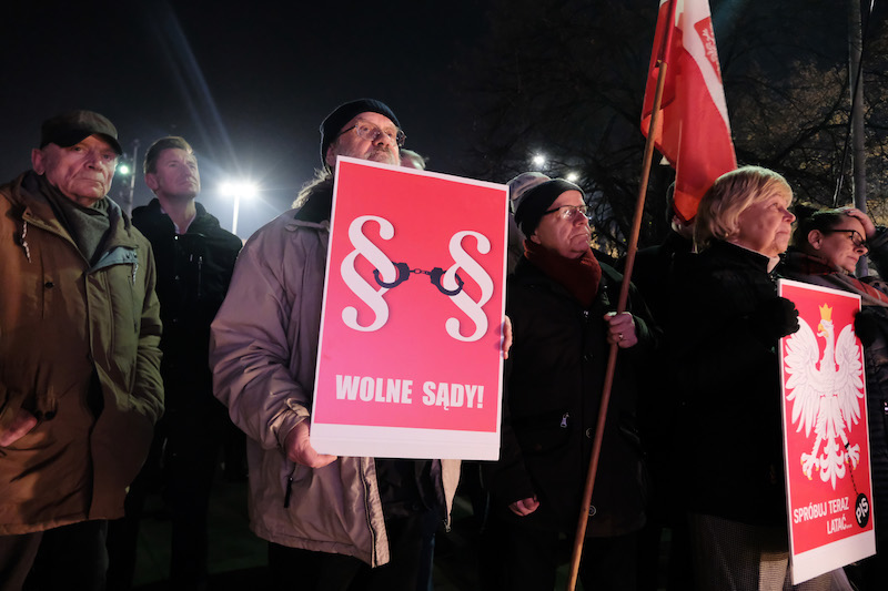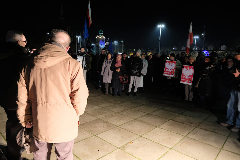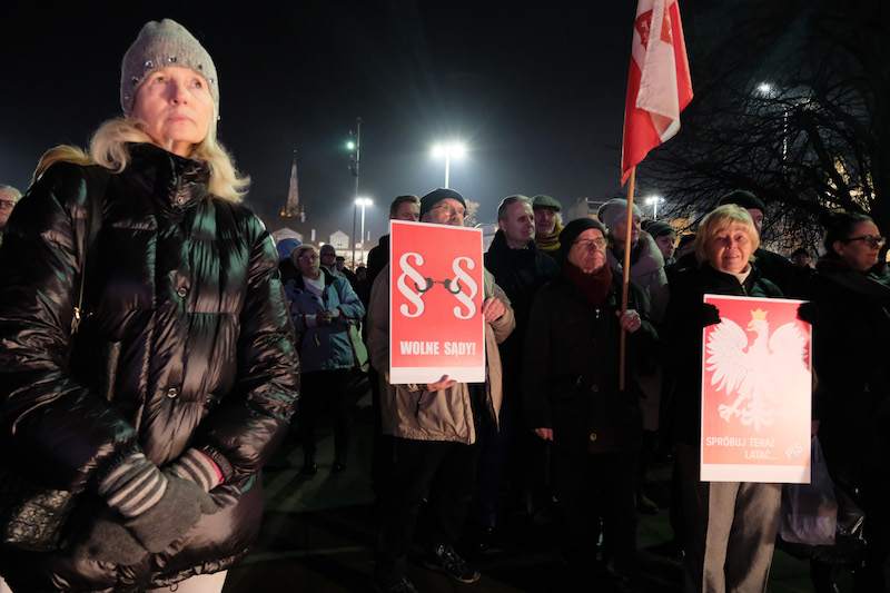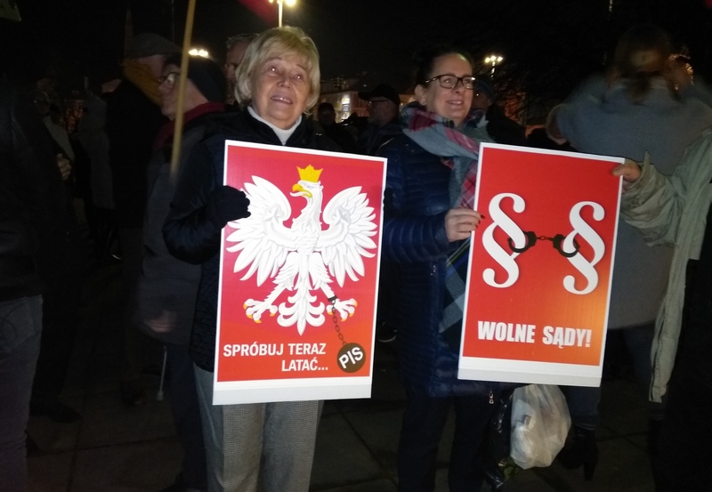 W piątkowe (20 grudnia), późne popołudnie na placu Solidarności w Szczecinie zebrało się ok. 150 osób, by manifestować w obronie wolnych sądów i przeciw ustawie dyscyplinującej sędziów. Demonstracja rozpoczęła się od odśpiewania polskiego hymnu.