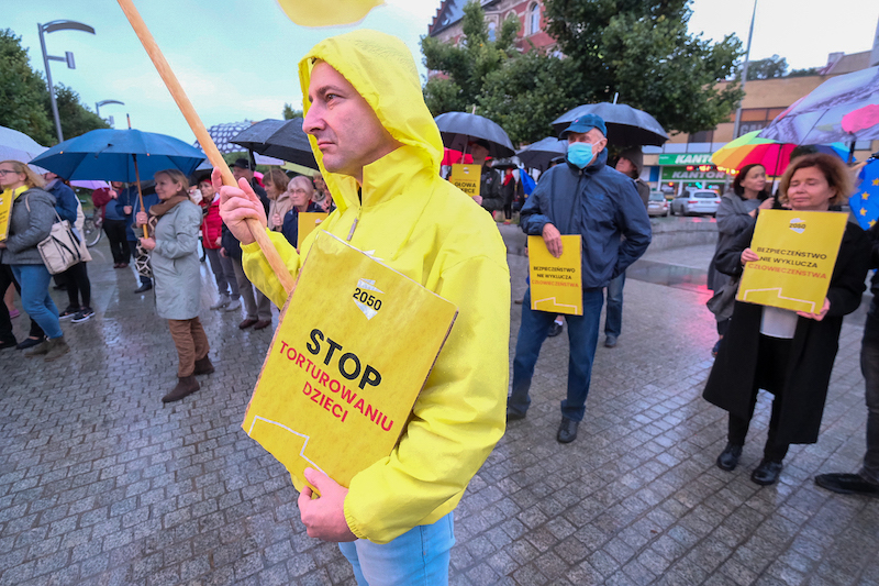 - Nie ma takiego prawa, które pozwalałoby kilkuletnie dzieci zawracać na granicę, wywozić do lasu i przerzucać przez zasieki z drutu kolczastego - mówił jeden z uczestników szczecińskiej demonstracji.