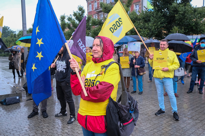 "Nikt nie jest nielegalny!" - skandowali uczestnicy wtorkowej demonstracji na pl. Adamowicza w Szczecinie. Pod hasłem „Bezpieczeństwo nie wyklucza człowieczeństwa” protestowali przeciwko działaniom rządu, pogłębiającym kryzys na polsko-białoruskiej granicy.