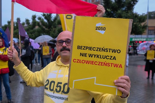 - Kiedy w szkołach mówimy o Mickiewiczu, Słowackim, o Norwidzie, to wspominamy o uchodźcach - Adam Kościelak z Lewicy Razem przypominał uczestnikom szczecińskiej manifestacji. - Trzeba mieć świadomość, że cała Polska jest zbudowana na takich jak oni uchodźcach. Natomiast to, co teraz robi rząd z ludźmi szukającymi szansy na lepsze życie w naszym kraju jest głęboko niemoralne i nielegalne.