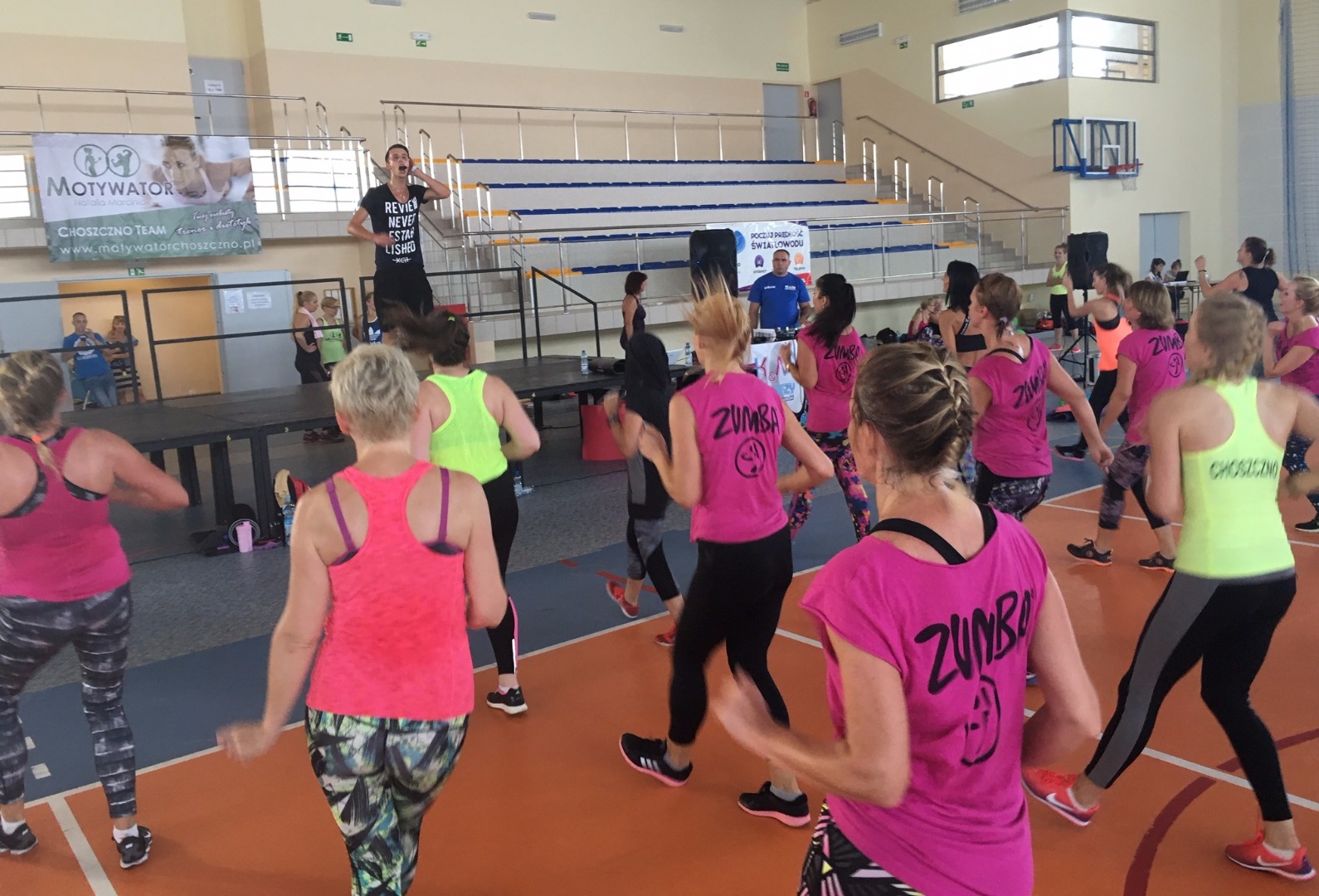 Maraton w hali sportowej Zespołu Szkół nr 2 przy ul. Polnej w Choszcznie zorganizował klub Motywator Natalia Marciniak. To ona rozgrzała salę pierwszym treningiem. Potem do zabawy porwał wszystkich Maciej Jopek - tancerz i instruktor zumby z teamu Ewy Chodakowskiej.