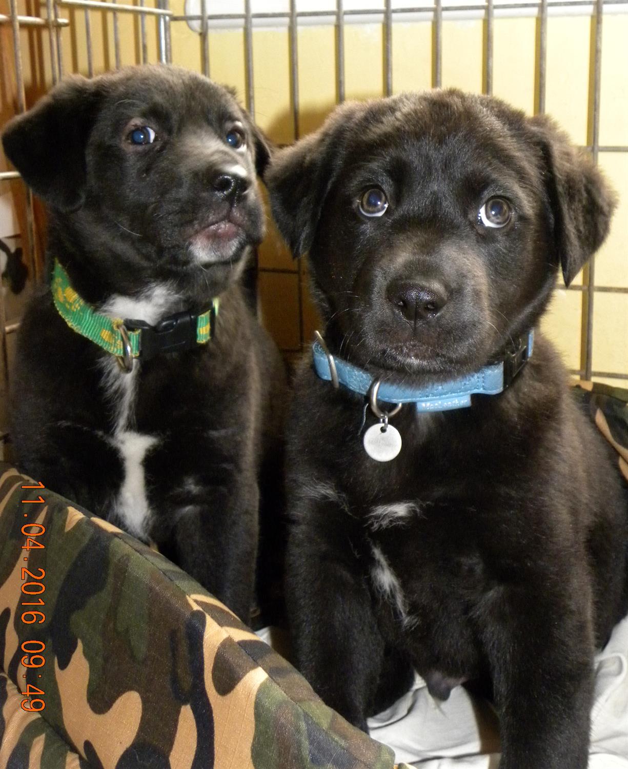 Na zdjęciach: Psiaki - Funt i Dolar oraz kociaki po przejściach, czyli Albercik (na plecach) i Boberka.