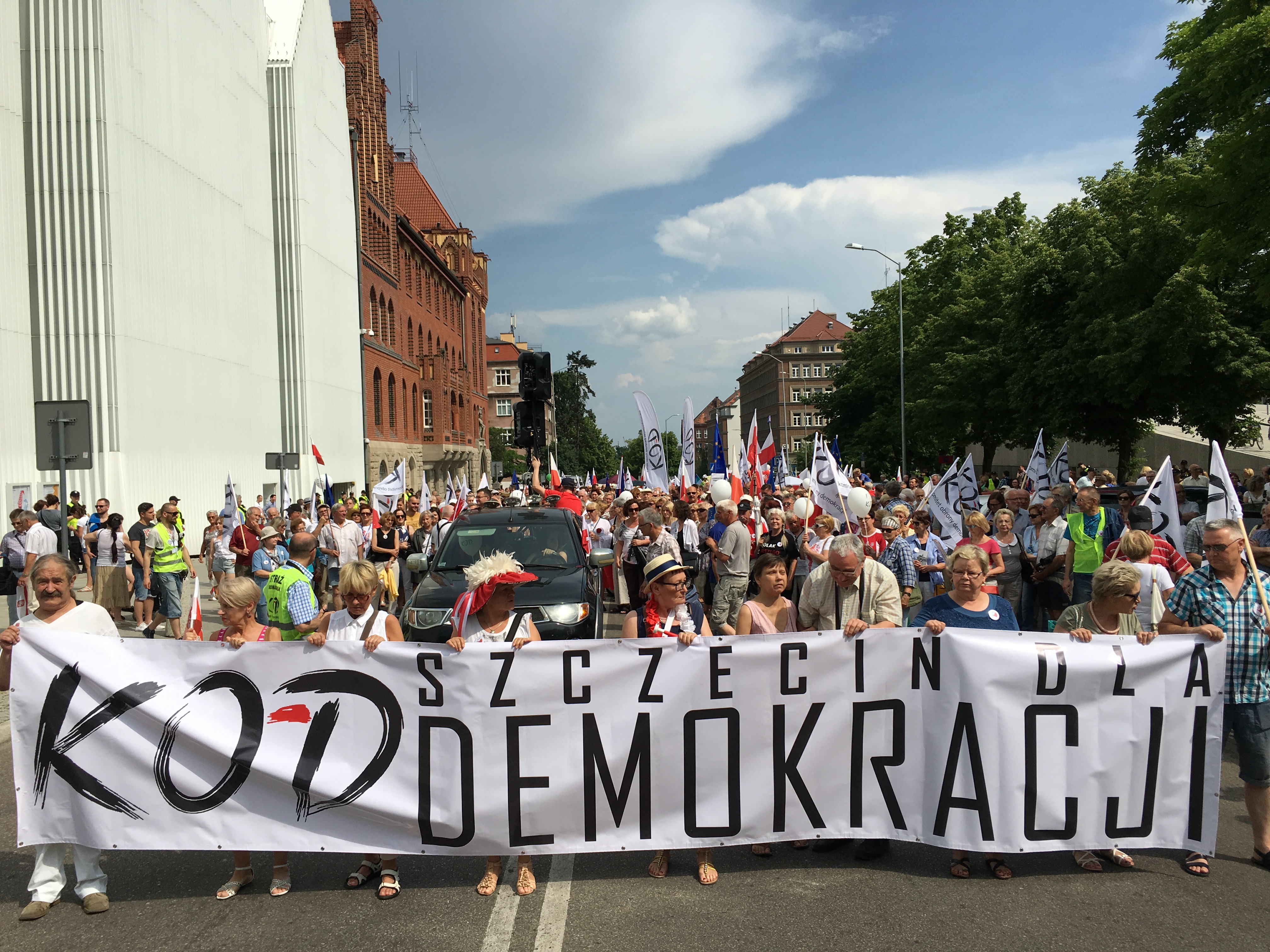 Spod szczecińskiej filharmonii wyruszył marsz pn. Wszyscy dla wolności członków i sympatyków Komitetu Obrony Demokracji. Na prośbę policji, nieco zmieniono trasę. Demonstranci z placu Grunwaldzkiego skręcili w ulicę Śląską.