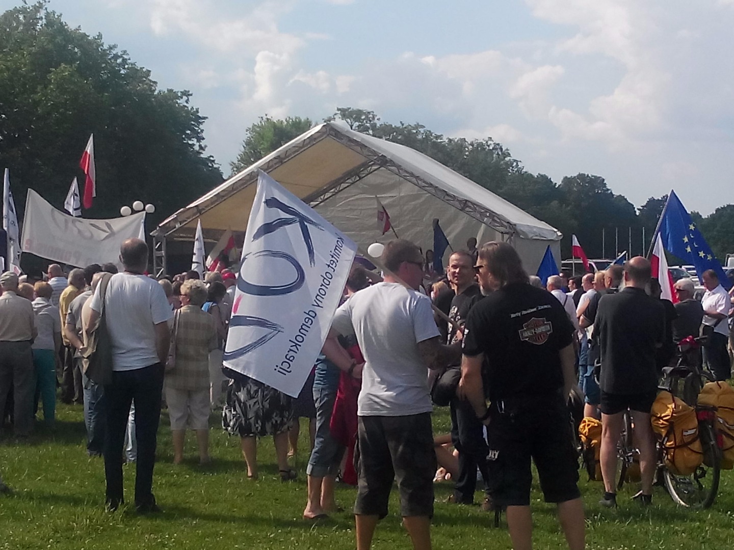 Znalazłem sposób na KOD. Następny przemarsz przy samym muzeum. 3/4 chodzących eksponatów wciągnie do muzeum i przypnie do ściany. Wymarsz KOD-u był symboliczny. Rupiecie od muzeum Przełomów przywiało na błonia (łąkę).