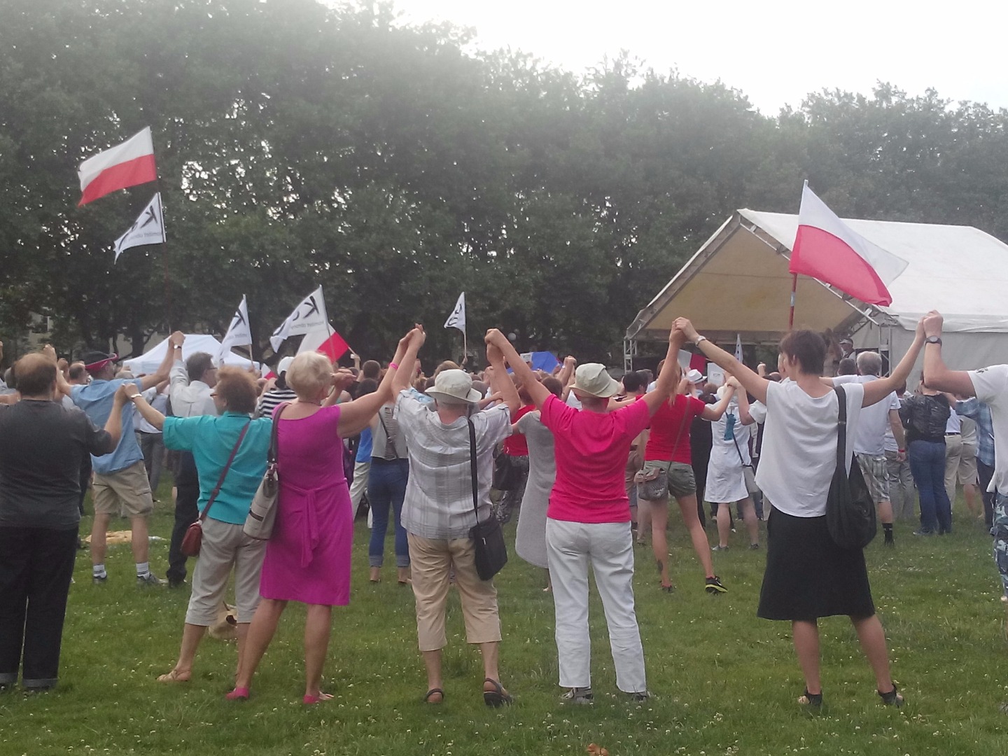 Dobiegł końca koncert Angeliki Anozie na scenie Komitetu Obrony Demokracji na Jasnych Błoniach. Punktualnie o 17 członkowie i sympatycy ruchu mają odśpiewać hymn i - jak zapowiedziano - wznieść toast za wolność.
