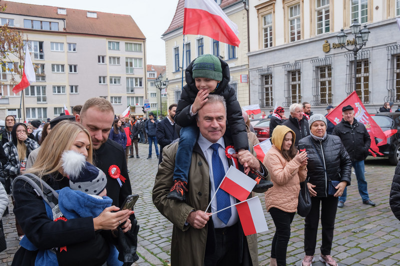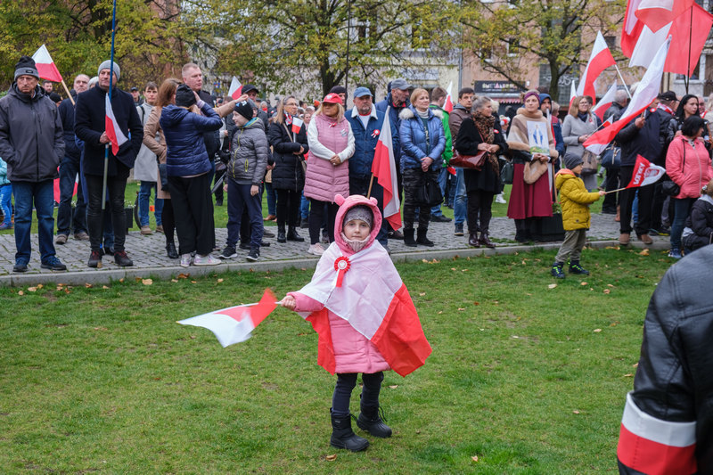 - Przyszliśmy tutaj, bo jesteśmy patriotami - mówią mieszkańcy, którzy około godziny 11.30 zaczęli gromadzić się na placu, aby pół godziny później pójść we wspólnym pochodzie.