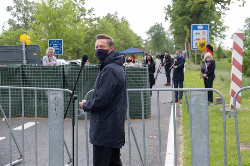 Marszałek województwa zachodniopomorskiego Olgierd Geblewicz przy granicy w Rosówku spotkał się z sekretarzami stanu Patrickiem Dahlemannem z Meklemburgii-Pomorza Przedniego oraz dr Juttą Jahns-Böhm z Brandenburgii, aby wspólnie zaapelować do rządów Polski i Niemiec o otwarcie granic.