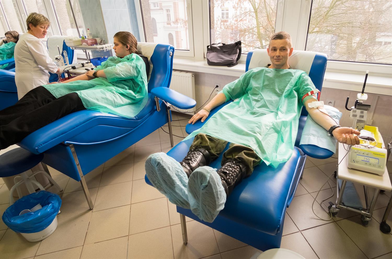 W grupie rekordzistów, a nawet na ich czele, stoi z pewnością st. chor. sztab. Jacek Schmidt, który wraz z innymi żołnierzami towarzyszył w poniedziałek marszałkowi w centrum krwiodawstwa. Ma 49 lat, dawcą jest od 29, do tej pory oddał 155 litrów krwi i osocza.