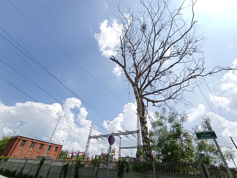 Brzoza ma ponad 10 metrów wysokości i fatalnie - bo niemal jednostronnie - przyciętą rozłożystą koronę. Jej konary górują nad przewodami energetycznymi oraz urządzeniami stacji elektroenergetycznej „Niemierzyn" (110/15 kV) przy ul. Serbskiej. Problem w tym, że drzewo jest martwe.