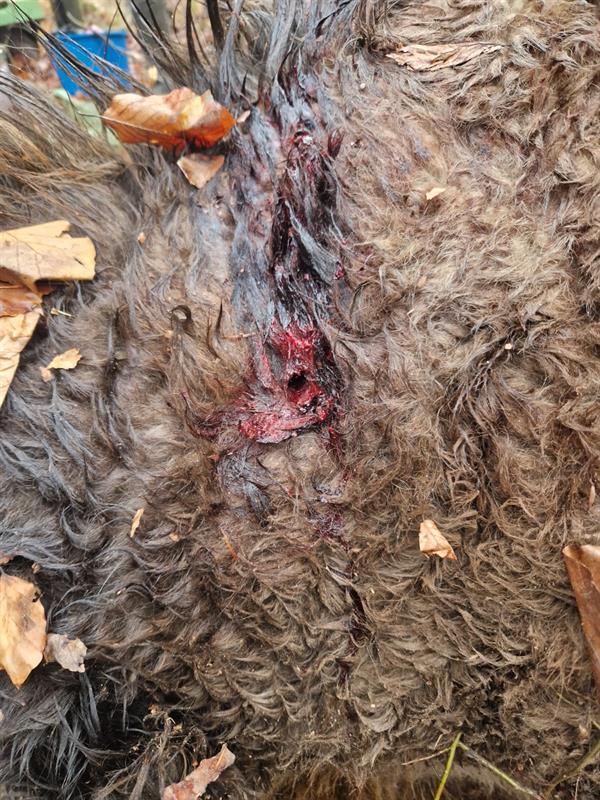 Kula uszkodziła tchawicę i dużą tętnicę. Fot. ZTP Dzika Zagroda