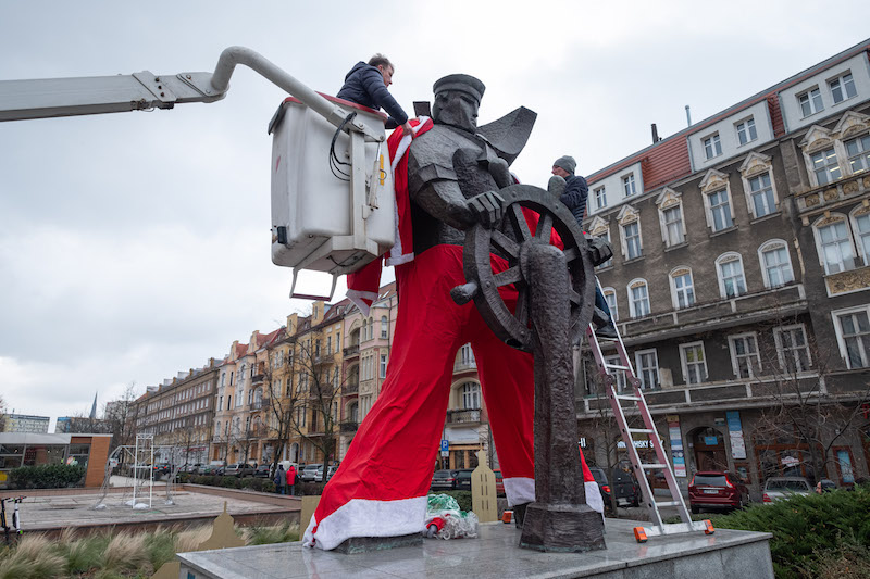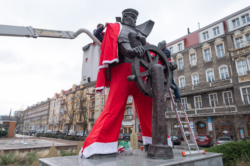 Zapuścił długą białą brodę, przywdział czerwony strój, a czapkę marynarską przysłonił nakryciem godnym świętego Mikołaja. Rzeźba marynarza z alei Fontann ponownie wprowadza mieszkańców w świąteczny nastrój.