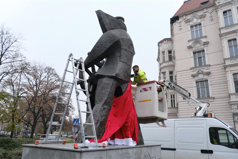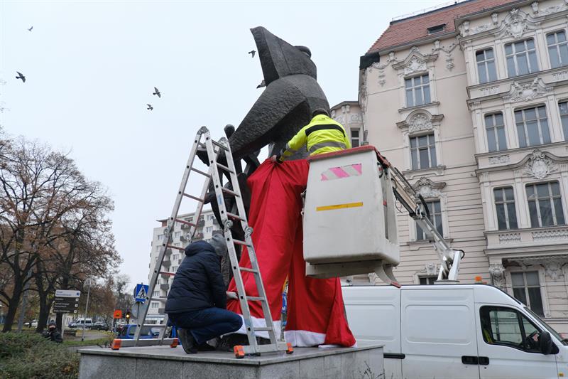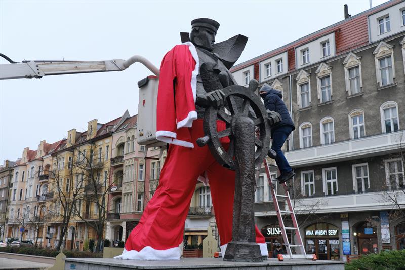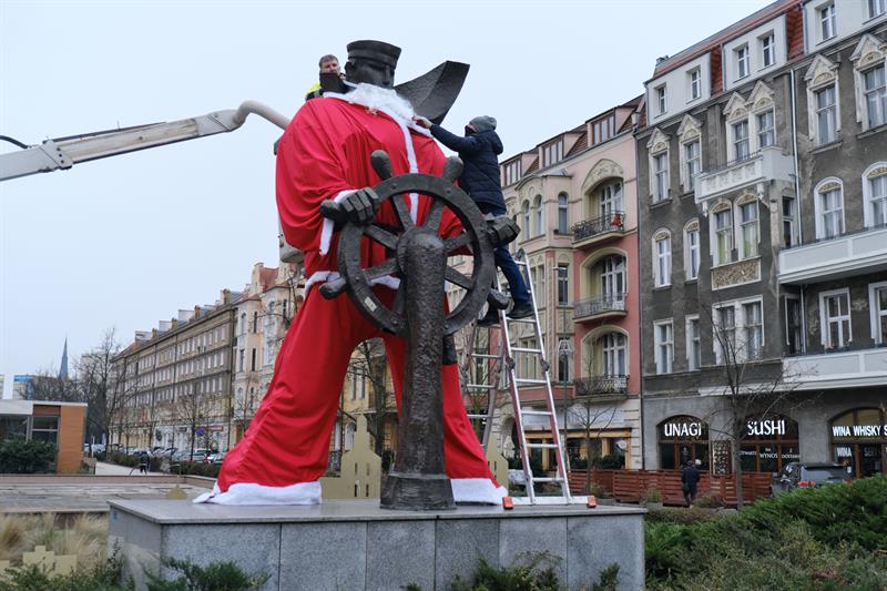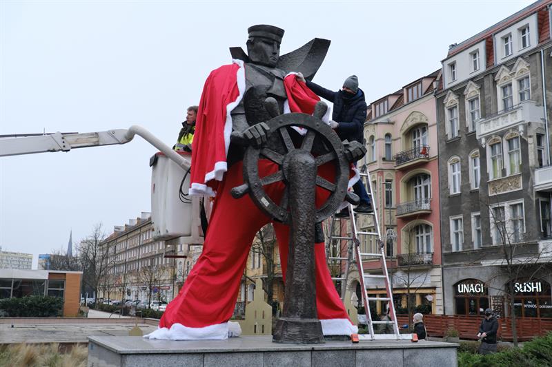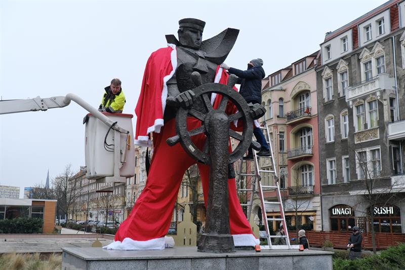 - Dzięki wyjątkowej stylizacji pomnika mieszkańcy pędzący przez pl. Grunwaldzki w przedświątecznej gorączce będą pamiętali o tym, że w tym roku świąteczne zakupy robimy lokalnie za pośrednictwem Szczecińskiego Jarmarku Bożonarodzeniowego online lub na Szczecińskim Targu Świątecznym - zachęca Celina Wołosz, rzecznik prasowy miejskiej spółki Żegluga Szczecińska Turystyka Wydarzenia.