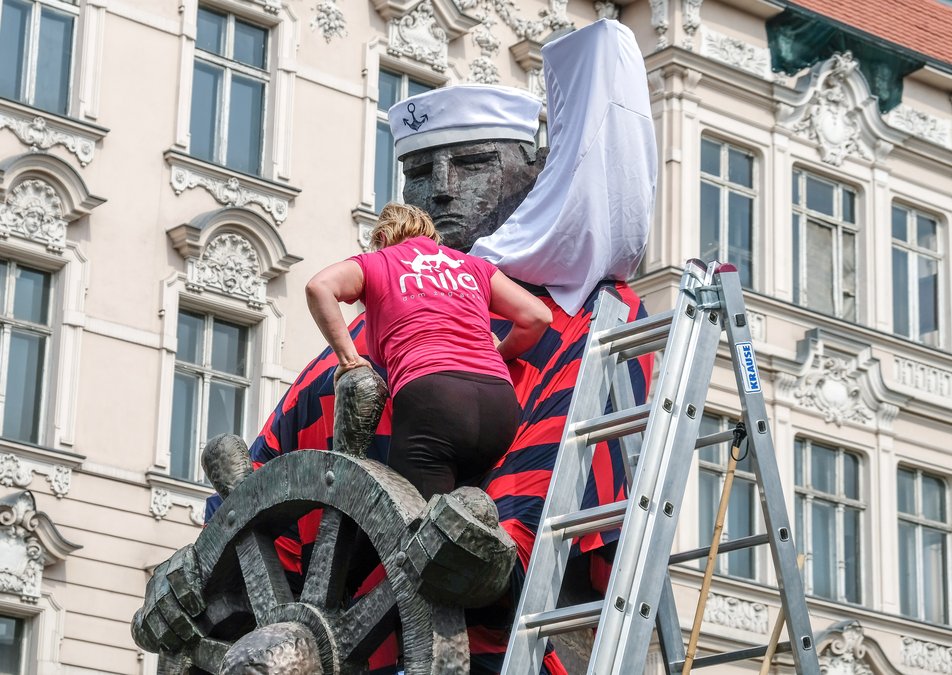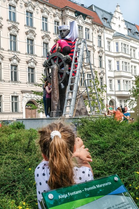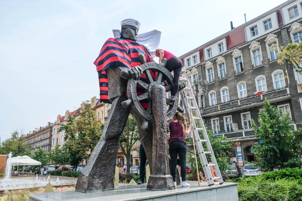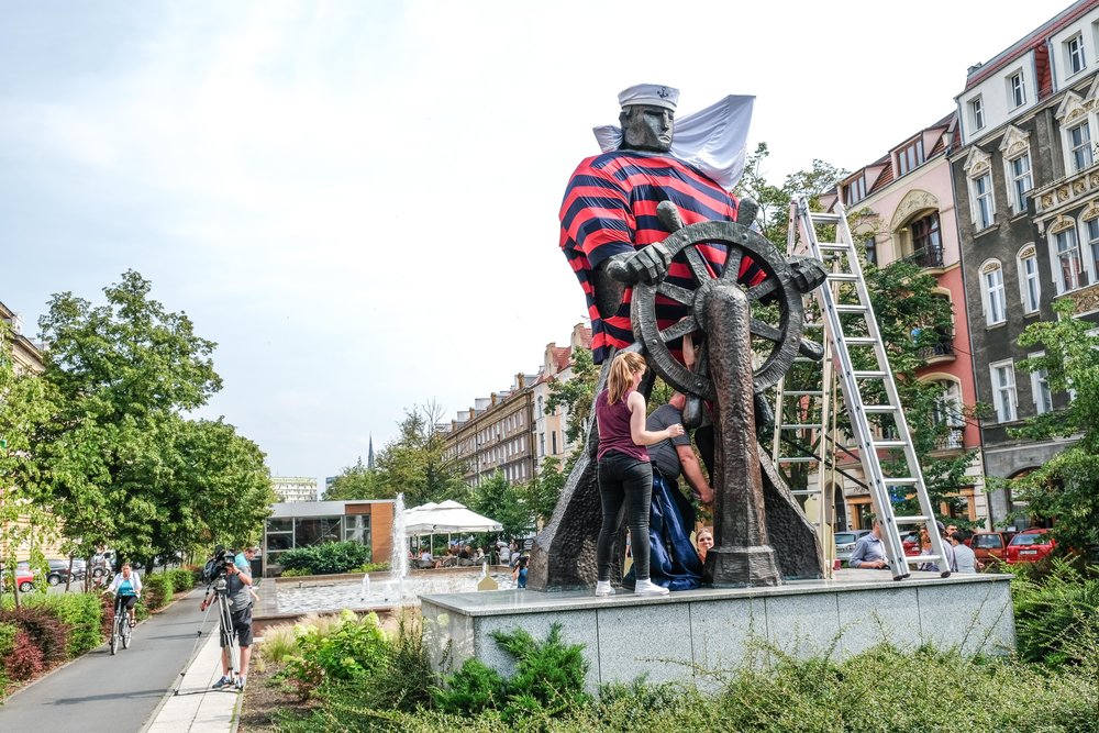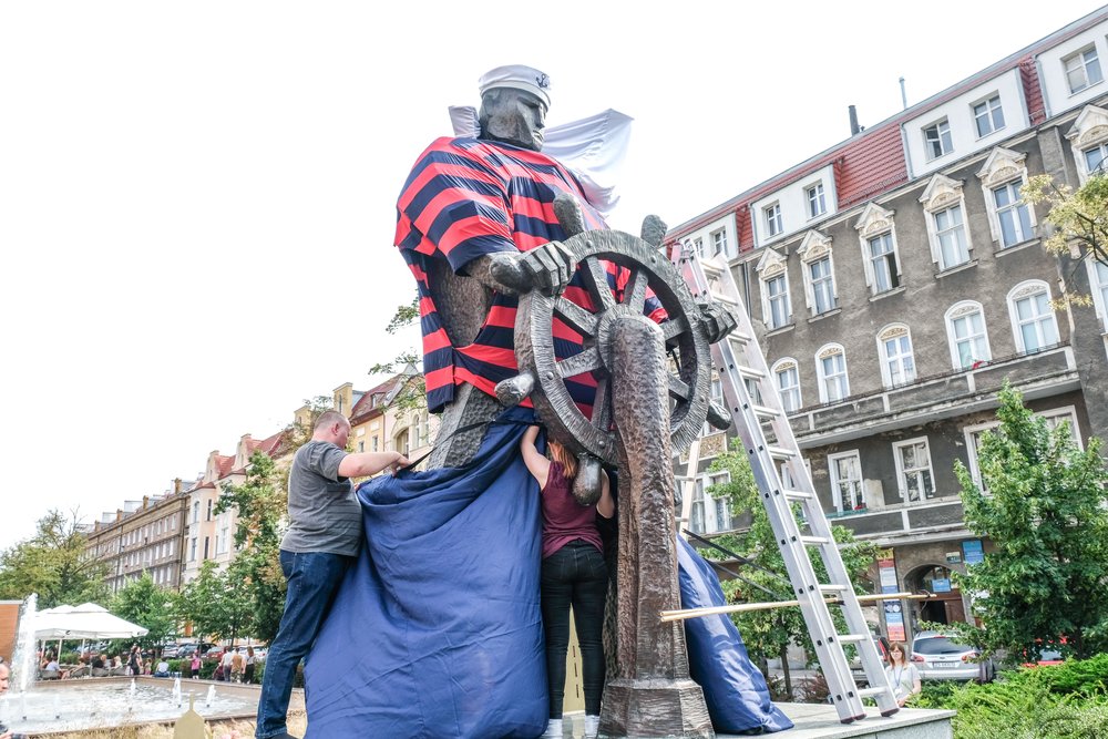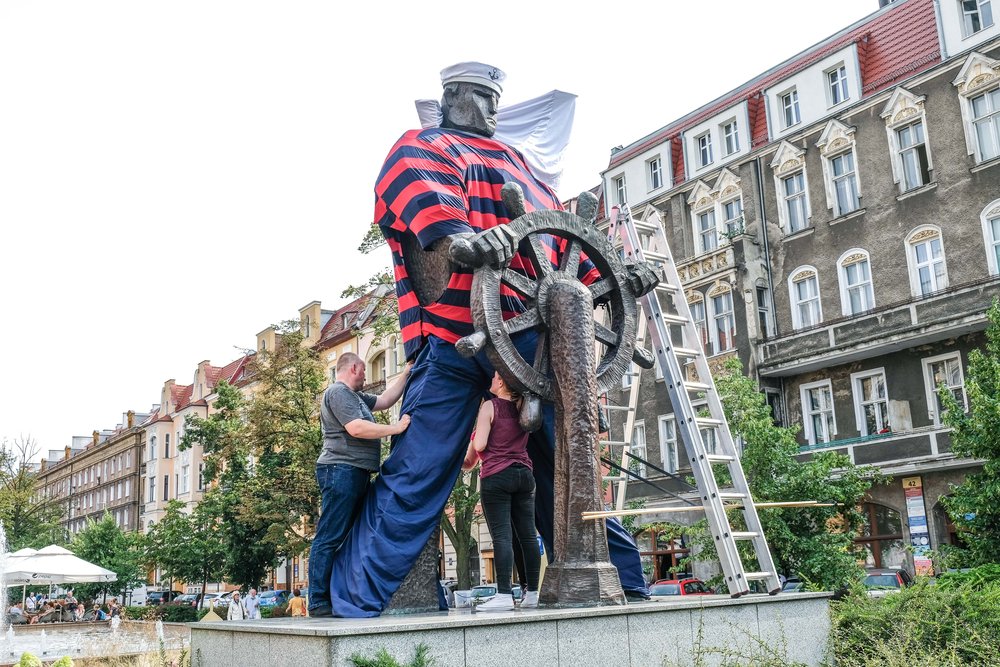 Około dwóch godzin trwało zakładanie odświętnego stroju na marynarza stojącego w szczecińskiej alei fontann. Tym samym, znana rzeźba jest już gotowa na finał regat The Tall Ships Races 2017, który rozpocznie się za nieco ponad dwa tygodnie.