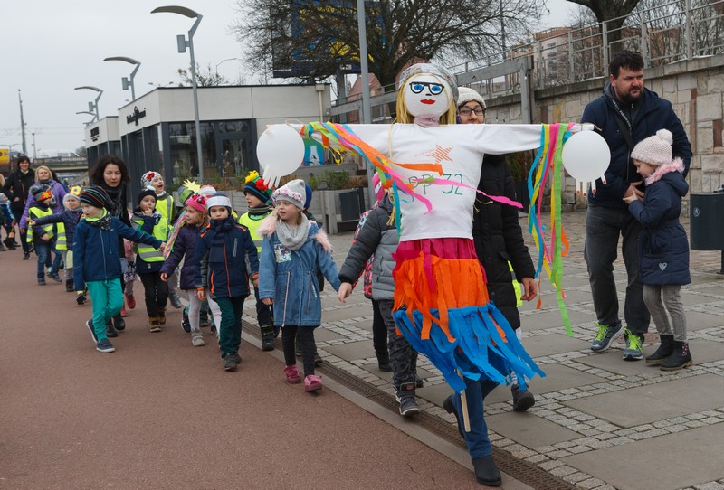 Przedszkolaki przybyły na Bulwar Piastowski niedługo po godzinie 11. Na czele kolumny, jaką utworzyło każde przedszkole, niesiono kukłę. Każda marzanna była bardzo pomysłowo zrobiona. Pojawiła się ruda, blondynka i niebieskowłosa. Jedna miała nadmuchane rękawiczki za dłonie, inna dość ciekawą perukę. Dzieci często stosowały też bibułę - czy to do wykonania spódnicy, czy to tylko jako drobną ozdobę.