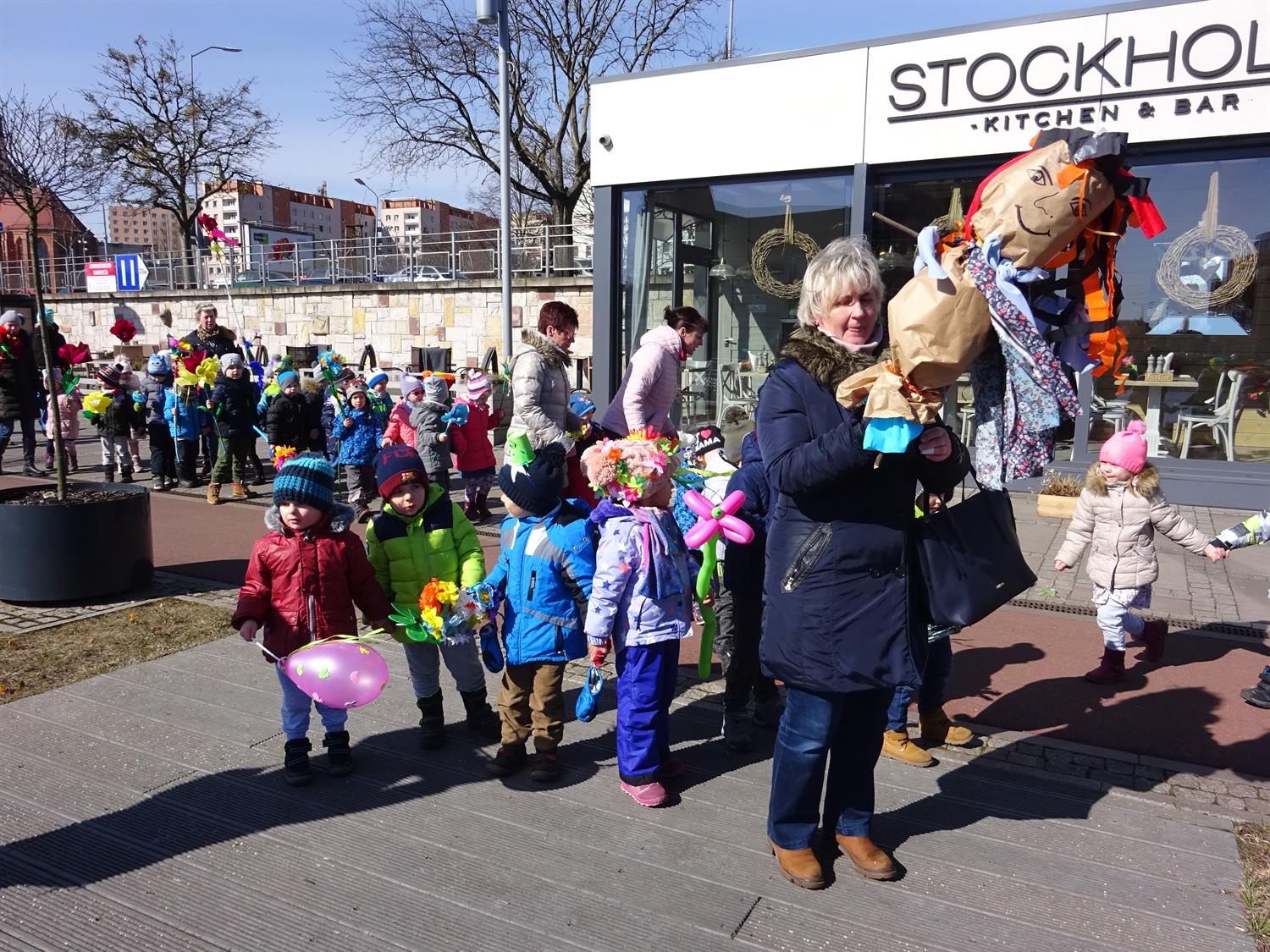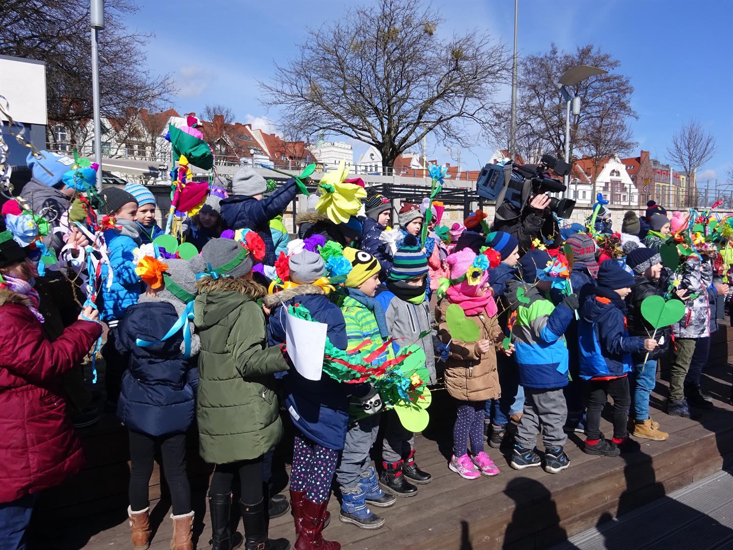 Barwny korowód dzieci rozpoczął wydarzenie o godz. 11. Młodzi szczecinianie dumnie maszerowali ulicą Wyszyńskiego, aż do bulwaru Piastowskiego. Przed utopieniem marzanny, przedszkolaki śpiewały radosne piosenki oraz "żegnały się" z zimą. Pogoda sprzyjała, ponieważ błękitne niebo i słońce stworzyły wiosenny klimat.