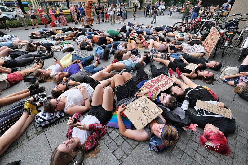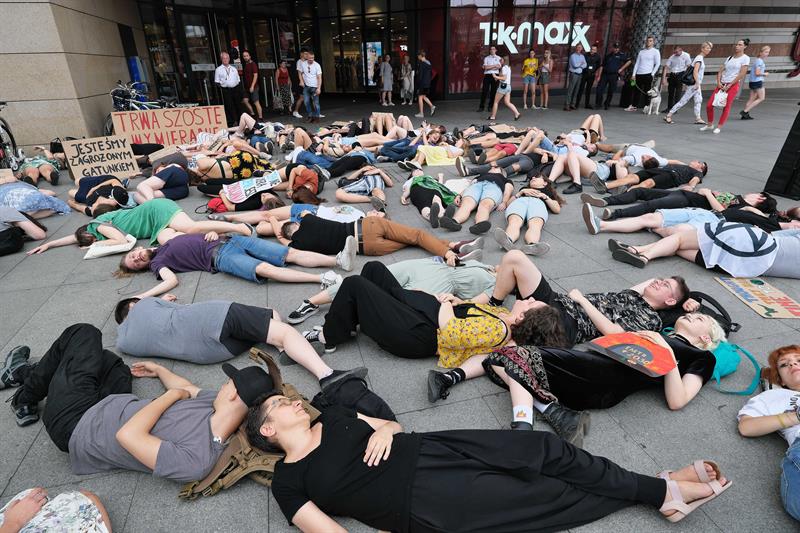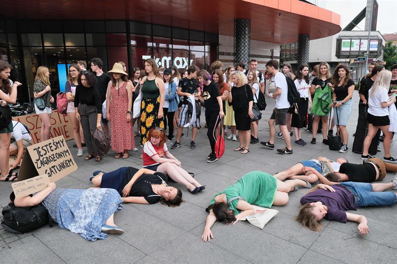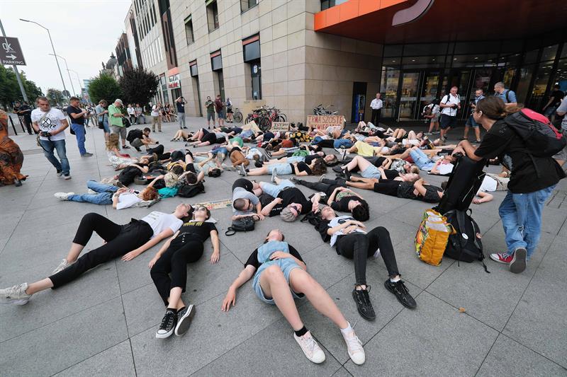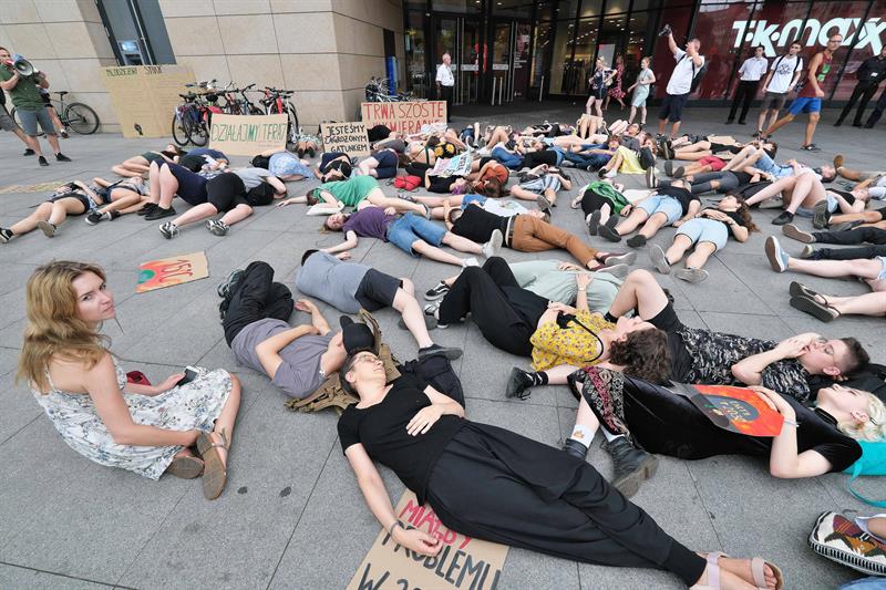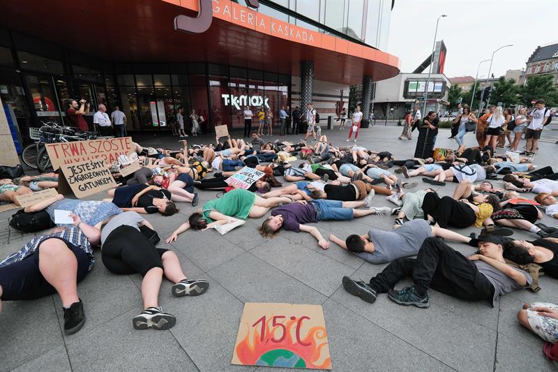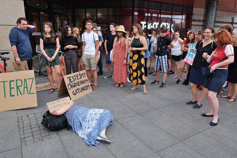 Happening grupy Extinction Rebellion, poświęcony kryzysowi klimatycznemu, odbył się we wtorkowe popołudnie przed wejściem do Galerii Kaskada od strony placu Żołnierza Polskiego. Aktywiści położyli się na chodniku, co miało symbolizować wszystkie gatunki fauny i flory, wymierające z powodu nieodpowiedzialnej działalności człowieka.