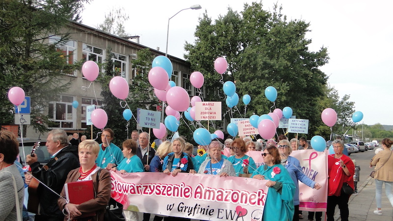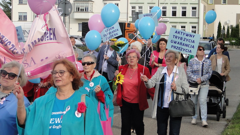 Ulicami Gryfina przeszedł dziś (sobota 30 września) tradycyjny Marsz Życia pod znakiem Różowej (po raz piętnasty) i Niebieskiej Wstążki (po raz jedenasty), organizowany przez miejscowe Stowarzyszenie Amazonek „Ewa”. Wydarzenie ma na celu propagowanie akcji informacyjnej dotyczącej badań profilaktycznych związanych z chorobami nowotworowymi – rakiem piersi (symbolem walki z tym nowotworem jest różowa wstążka) i rakiem prostaty (odpowiednio – niebieska wstążka). Przemarsz zakończono na miejscowym nabrzeżu. Tu można było skorzystać z oferty stoisk profilaktycznych. Były podziękowania dla przyjaciół i sponsorów oraz występy amatorskich grup artystycznych.
