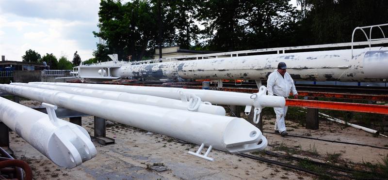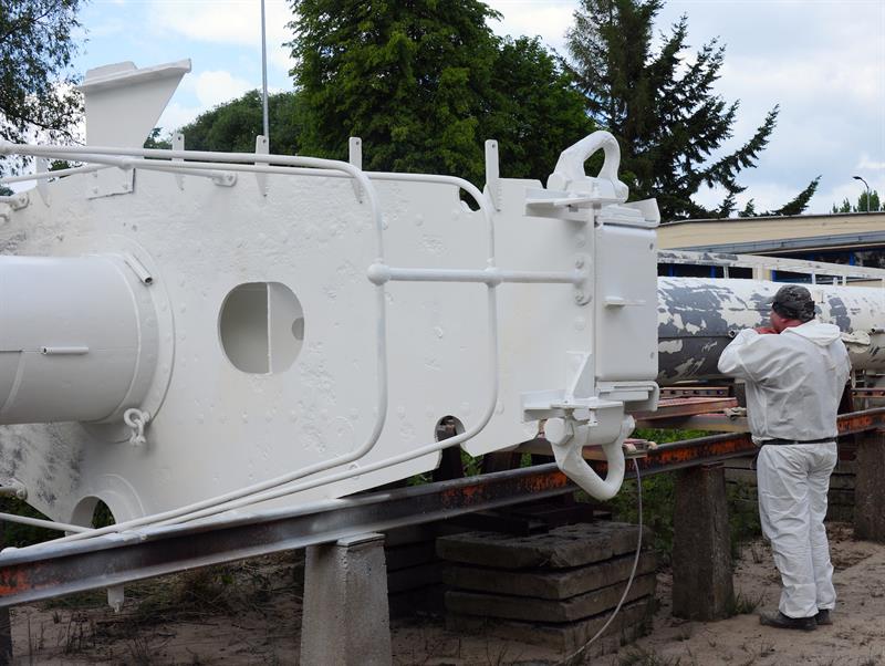 Trwają ostatnie prace przy maszcie ze statku „Kapitan K. Maciejewicz” przed transportem obiektu na szczecińską Łasztownię. W ostatnich dniach niemal 30-tonowy dźwig bomowy przechodzi czyszczenie i malowanie. Planuje się, że na przełomie maja i czerwca zostanie przewieziony na bulwar i ustawiony we wcześniej przygotowanym miejscu.