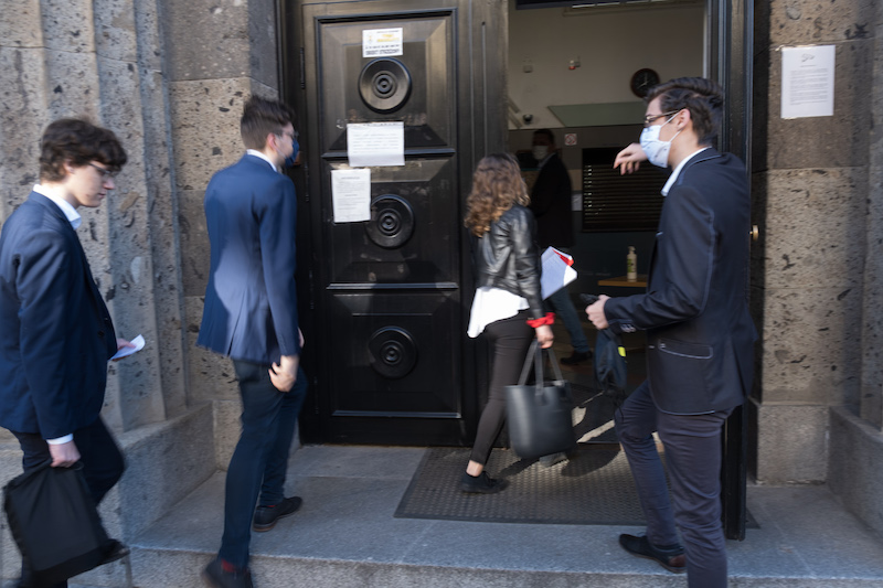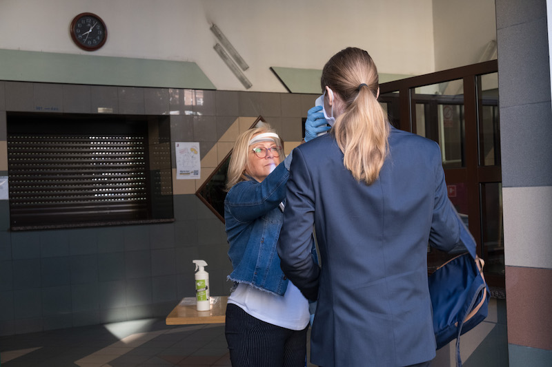 W niecodziennych okolicznościach maturzyści przyszli rano w poniedziałek na egzamin. Wszyscy obowiązkowo w maseczkach lub przyłbicach byli wpuszczani do szkoły z zachowaniem dystansu społecznego. Dla wielu z nich była to dodatkowo stresująca sytuacja.