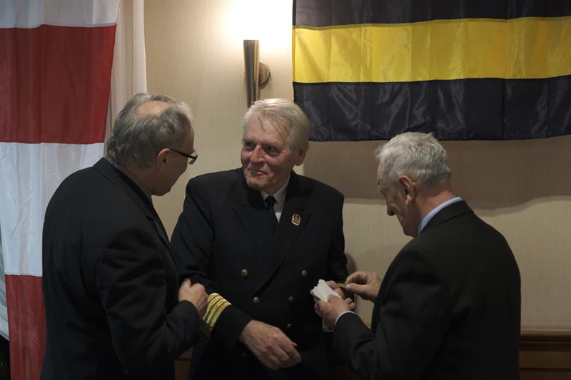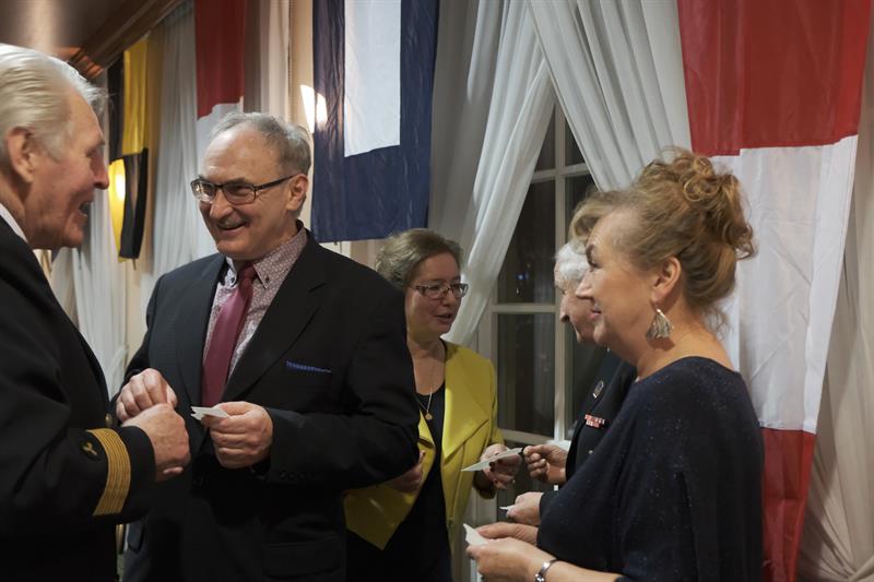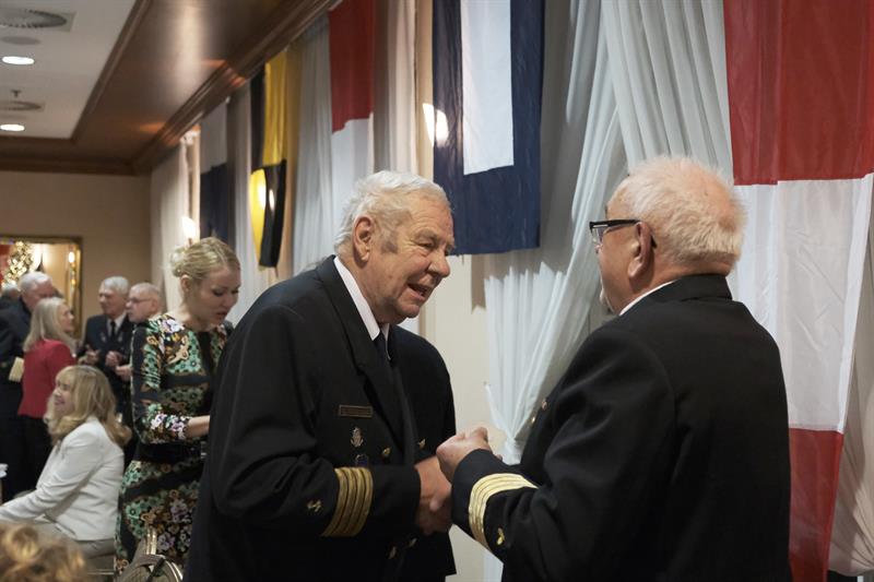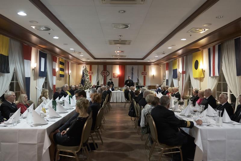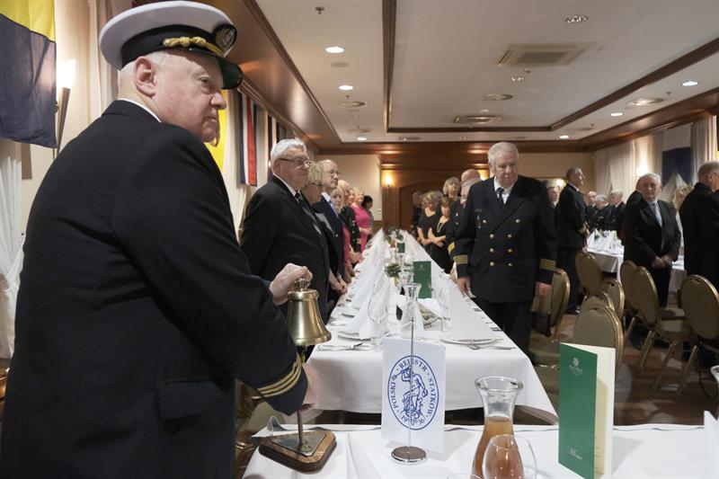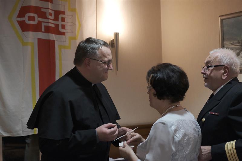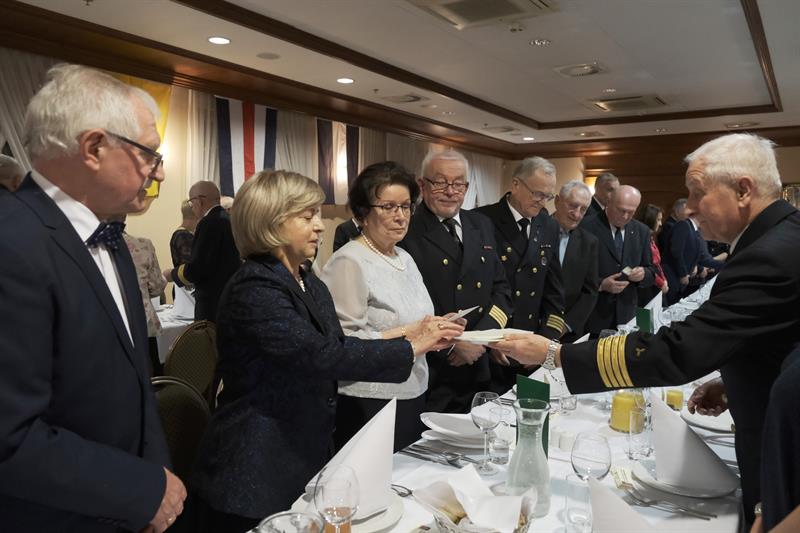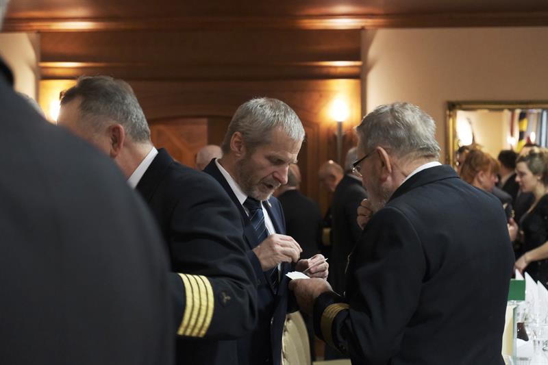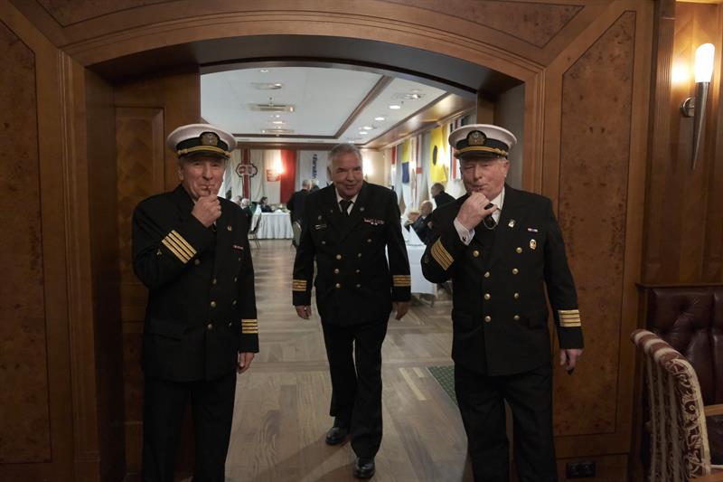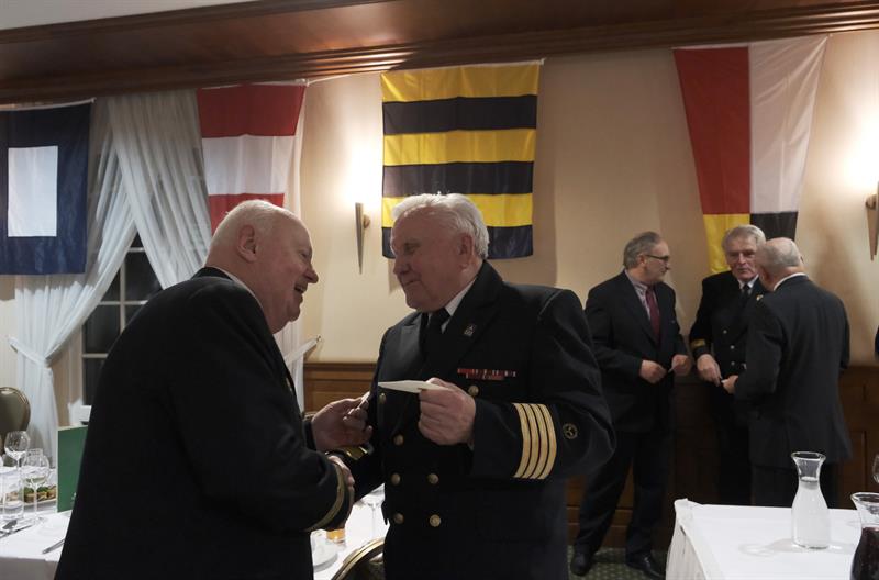 Dodajmy, że organizatorzy zadbali o morski wystrój sali, w której się odbyło spotkanie. Na ścianach zawieszono flagi kodu sygnałowego, polską banderę oraz flagi armatorów, takich jak Polska Żegluga Morska, Euroafrica, PLO i POL-Levant. Nie zabrakło sztandaru SSOMM.