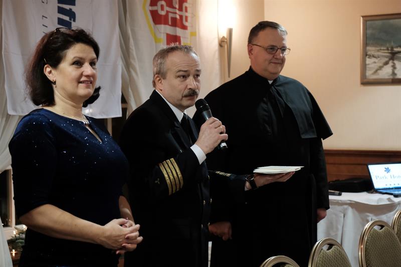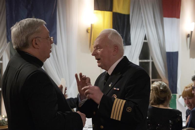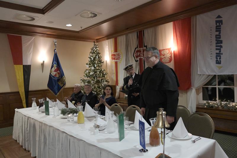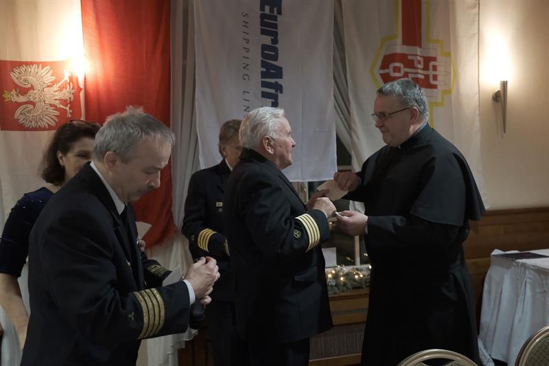 Stowarzyszenie Starszych Oficerów Mechaników Morskich zaprosiło na spotkanie swoich członków z rodzinami oraz gości: przedstawicieli innych stowarzyszeń, firm i instytucji z branży morskiej. Obecni byli duchowni: kapelan SSOMM ks. kanonik Ryszard Kamiński oraz ks. Piotr Bieniek, proboszcz szczecińskiego kościoła Morskiego (pw. Św. Jana Ewangelisty).
