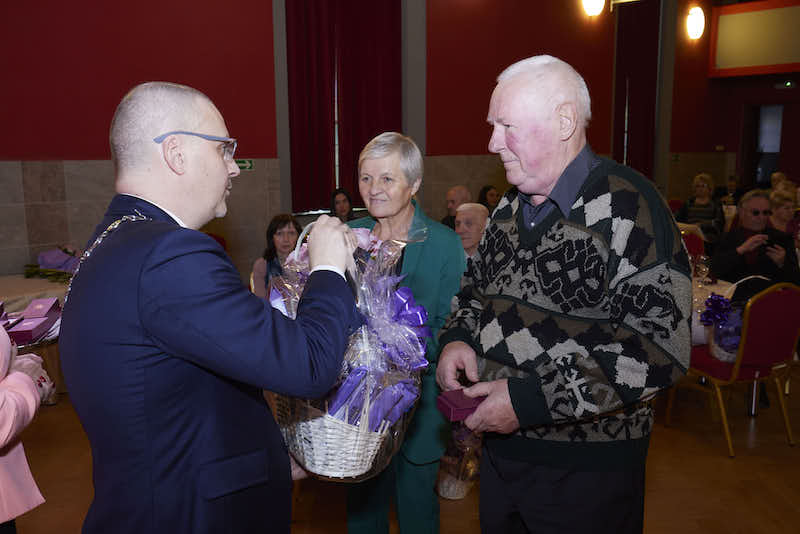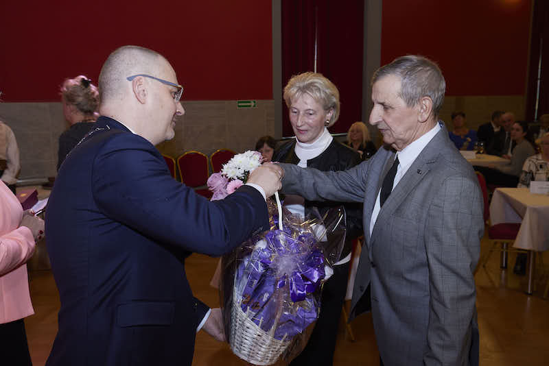 Natomiast uroczystą chwilą, było wręczenie medali za długoletnie pożycie małżeńskie, które nadane zostały przez Prezydenta RP. Przekazano też pamiątkowe dokumenty, kwiaty oraz kosze pełne prezentów.
