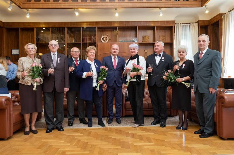 Pary, które mogą się pochwalić co najmniej pięćdziesięcioletnim stażem małżeńskim, uhonorowano we wtorek (29 października) podczas specjalnej uroczystości w szczecińskim magistracie. Piotr Krzystek, prezydent miasta, wręczył jubilatom Medale za Długoletnie Pożycie Małżeńskie, nadane przez prezydenta RP, oraz listy gratulacyjne i upominki.
