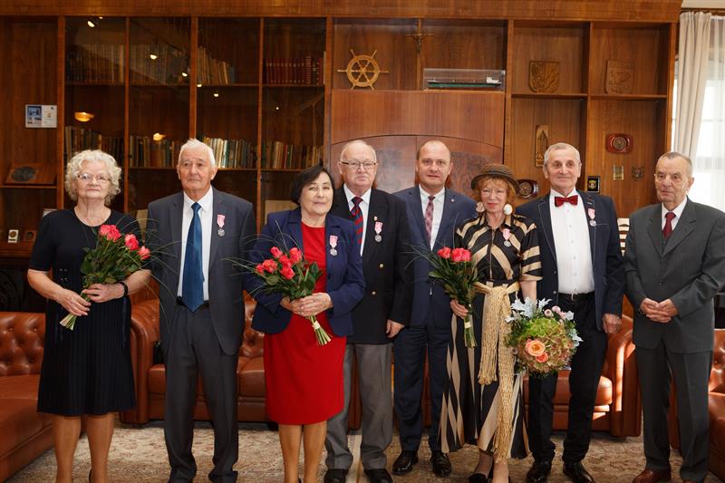 Trzynaście par obchodzących złote gody odebrało w szczecińskim magistracie Medale za Długoletnie Pożycie Małżeńskie nadane przez prezydenta RP Andrzeja Dudę. Takie wyróżnienie otrzymują te małżeństwa, które przeżyły razem pięćdziesiąt lat i więcej. Odznaczenia przekazał jubilatom prezydent miasta Piotr Krzystek, składając najlepsze życzenia, w uroczystości wziął też udział Jan Stopyra - pełnomocnik prezydenta ds. współpracy senioralnej. „Kurier Szczeciński” dołącza się do gratulacji. W najbliższych wydaniach naszej gazety będziemy zamieszczać zdjęcia wszystkich wyróżnionych par.