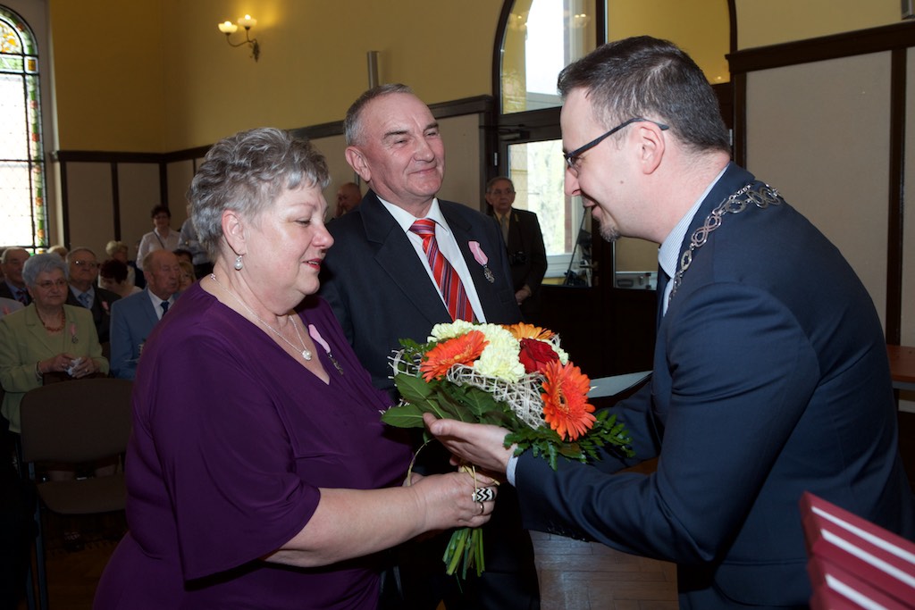 W sali przy Urzędzie Stanu Cywilnego 14 par małżeńskich z terenu gminy Myślibórz i Nowogródek Pomorski świętowało swój jubileusz złotych godów. Dostojnym jubilatom w obecności przedstawicieli władz samorządowych, zaproszonych gości i najbliższej rodziny, wręczono pamiątkowe medale nadane przez Prezydenta RP. Były też życzenia, kwiaty i zaśpiewano wspólnie tradycyjne ,,sto lat". Nie zabrakło miłych wzruszeń, koszy słodkich upominków oraz pięknej oprawy artystycznej.