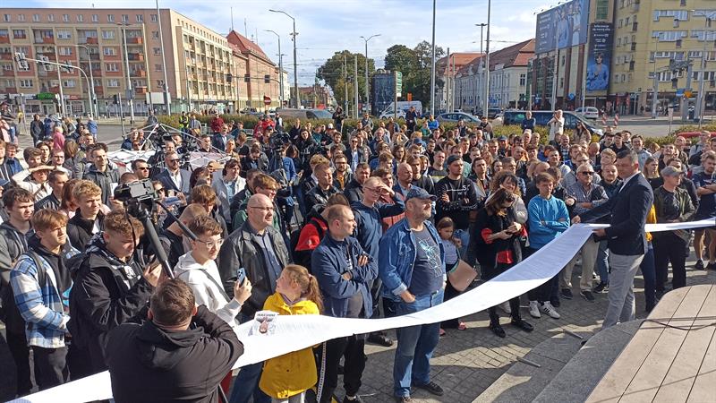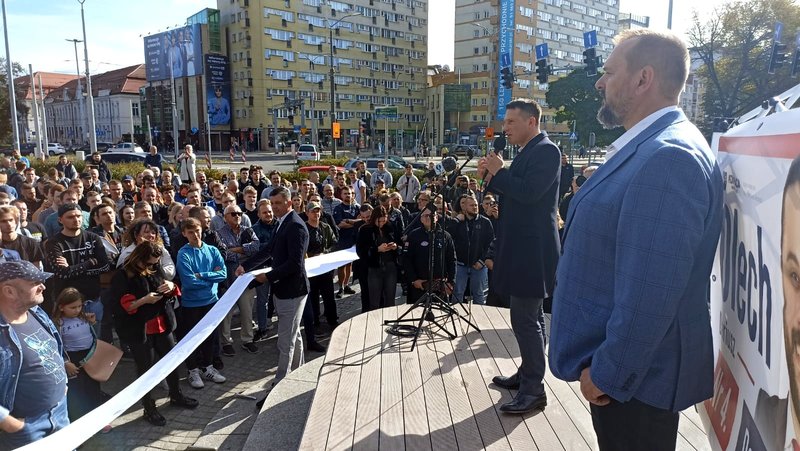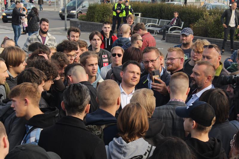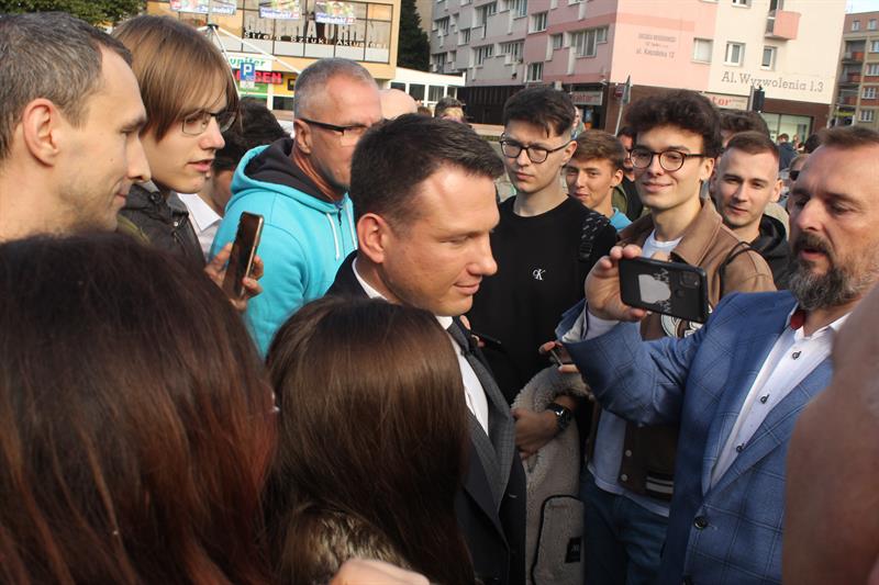 Idziemy do Sejmu po to, by zmienić polskie państwo - tłumaczyli w czwartek w Szczecinie kandydujący z naszego okręgu kandydaci Konfederacji. Mimo że spotkanie odbyło się niemal w środku dnia, na pl. Pawła Adamowicza spotkały się setki osób. Magnesem, który przyciągną większość z nich, był Sławomir Mentzen - w ciągu dwóch dni odwiedzi całą Polskę od Gdańska do Krakowa. Zachęca do głosowania na listę Konfederacji. Żeby zdążyć odwiedzić tyle miast w tak krótkim czasie, porusza się helikopterem.